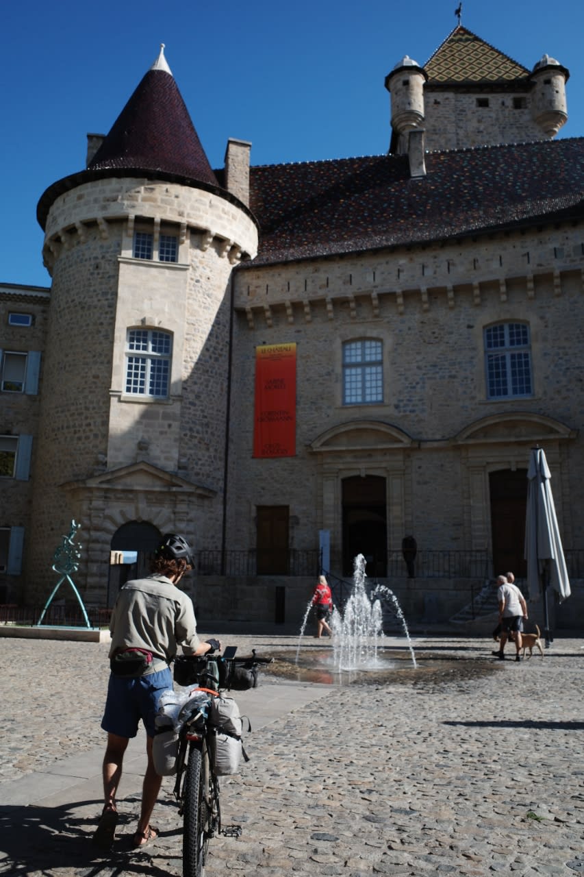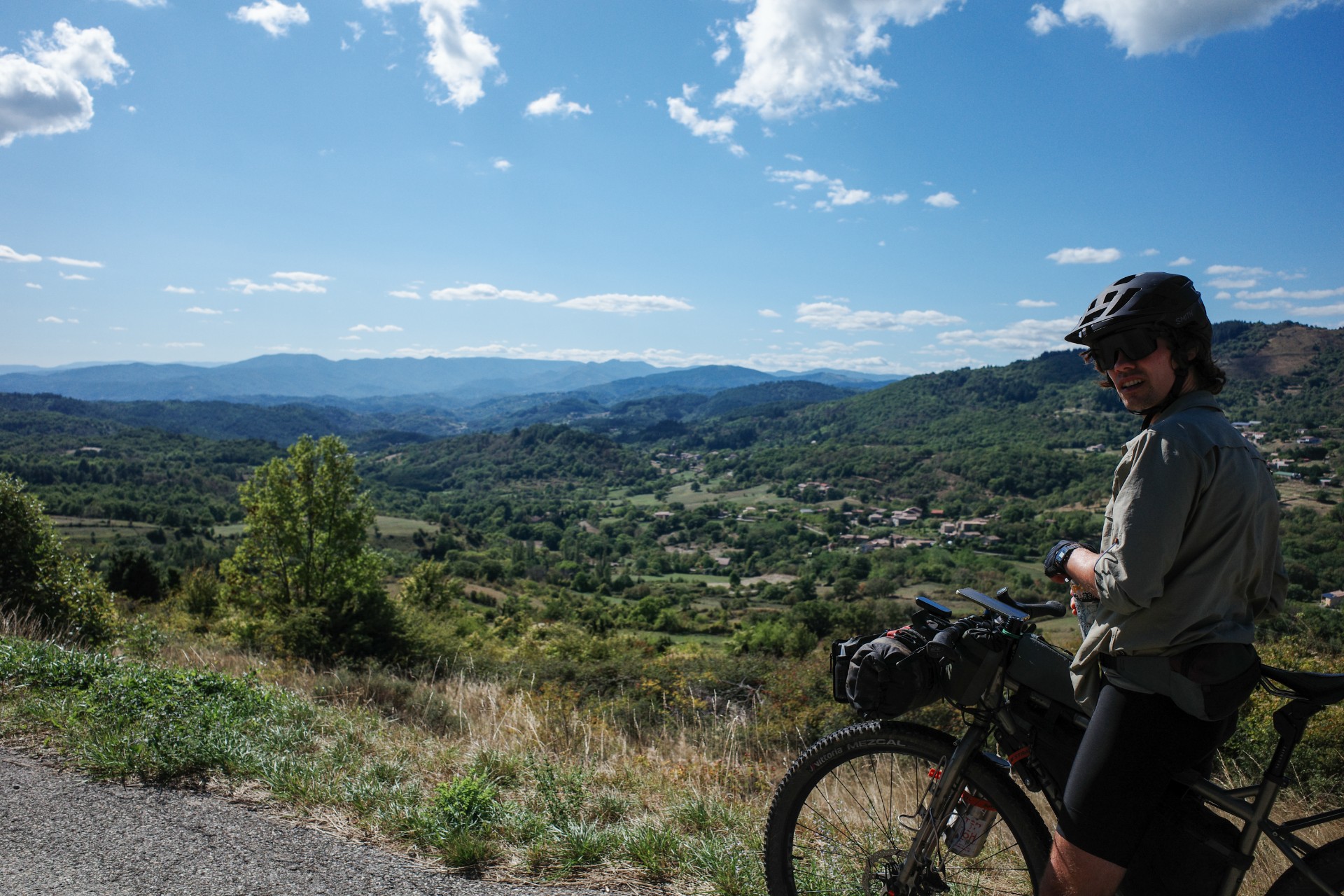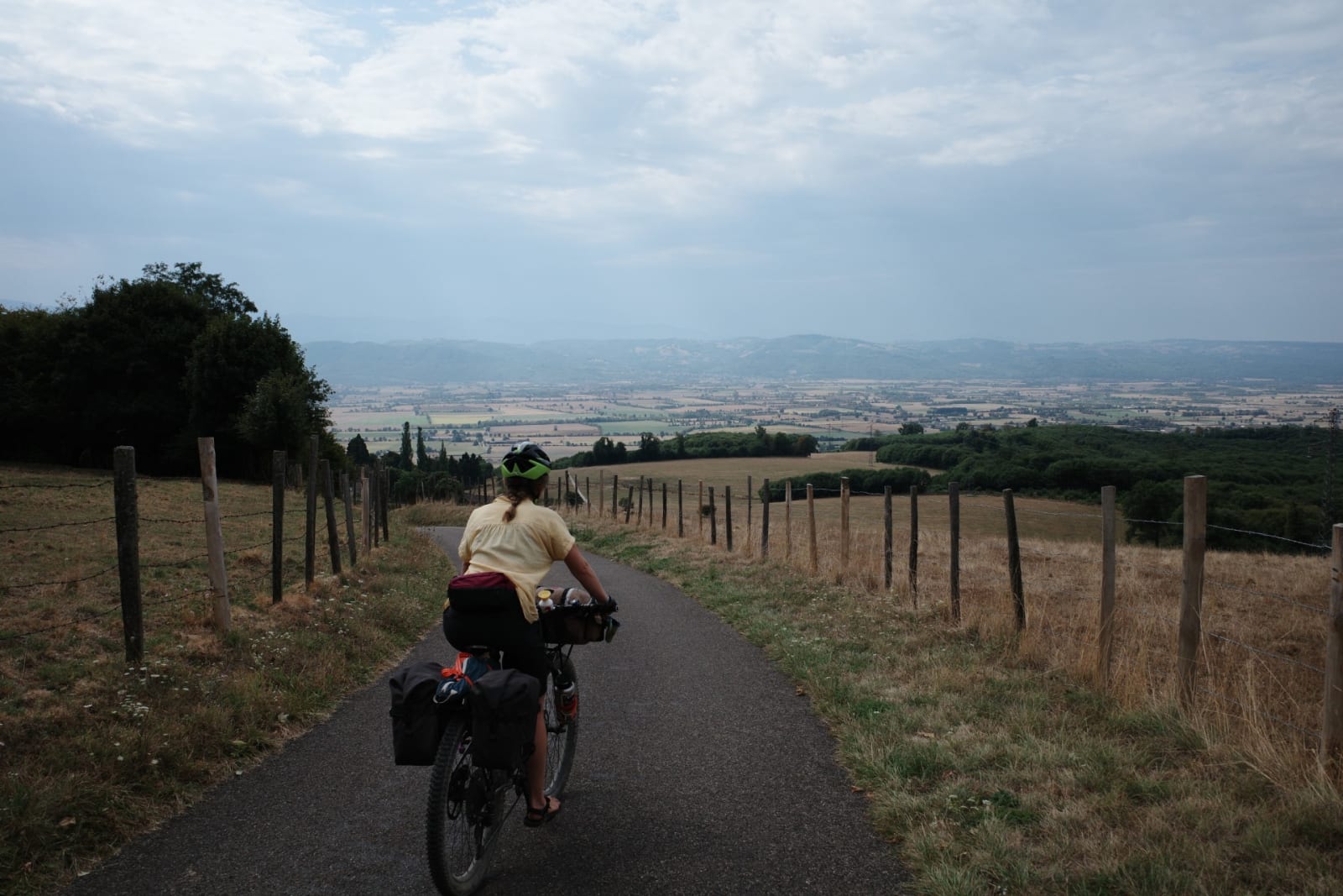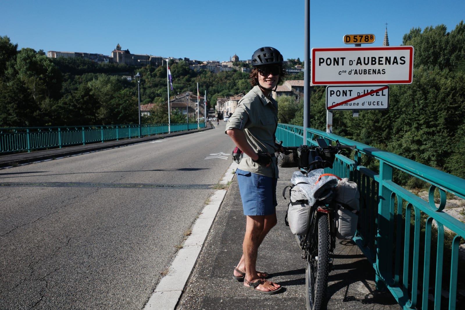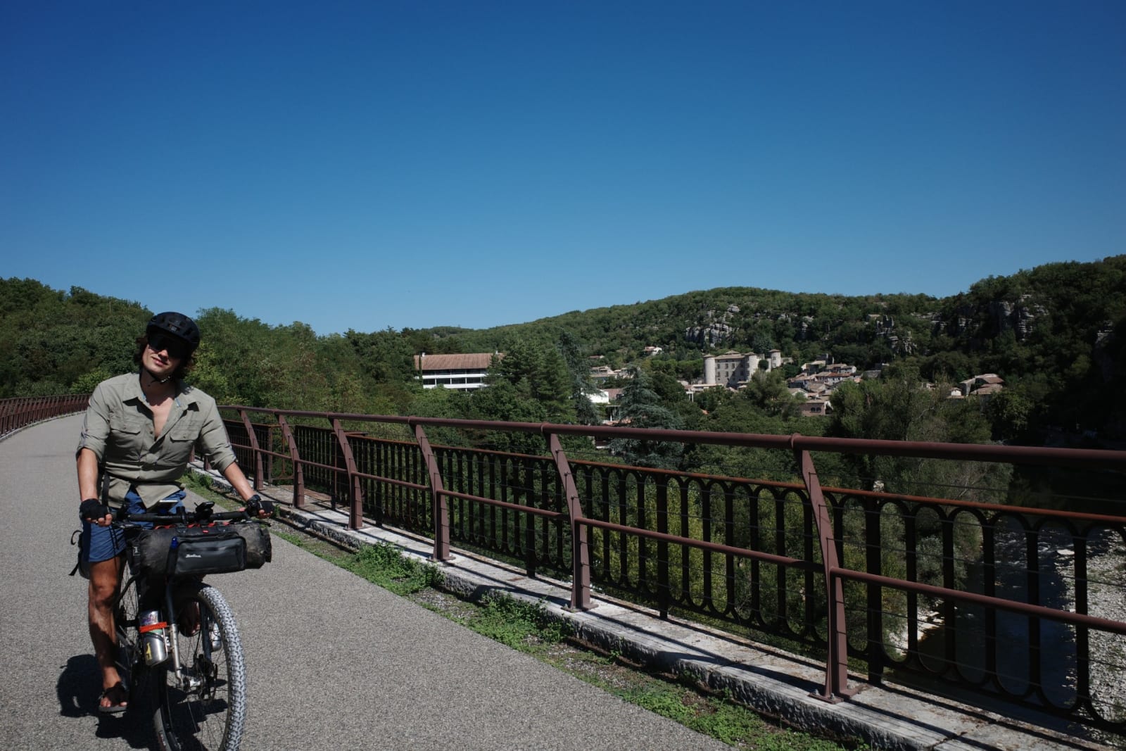 It was hard leaving Camping Robert and its private beach at Lake Paladru, but we did and continued riding west. The Isère region was full of excellent riding, full of little pilgrimage and GR trails. We quickly reached Valence - gateway to the Ardèche region - where we had our first warmshowers host! Warmshowers is a community of cyclists that offer each other just that: a warm shower and a bed or place to camp. Perfect for bigger cities like Valence that don’t have any campsites. It’s also free! Funnily enough, our host wasn’t home so we didn’t get the full-on social experience, but at least we had a place to pitch our tent. After a mix-up with the address, we finally arrived at the right house, rinsed off with a very cold garden hose shower, and enjoyed the garden all to ourselves — tucked away from the buzz of the city.
