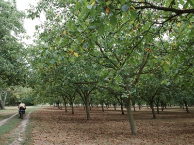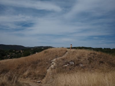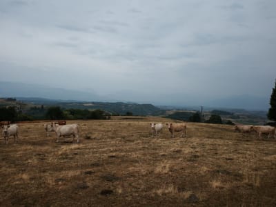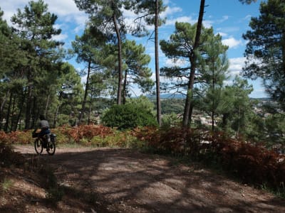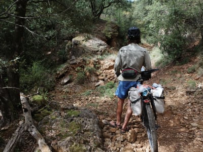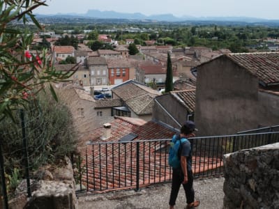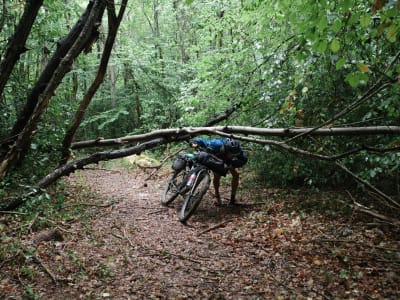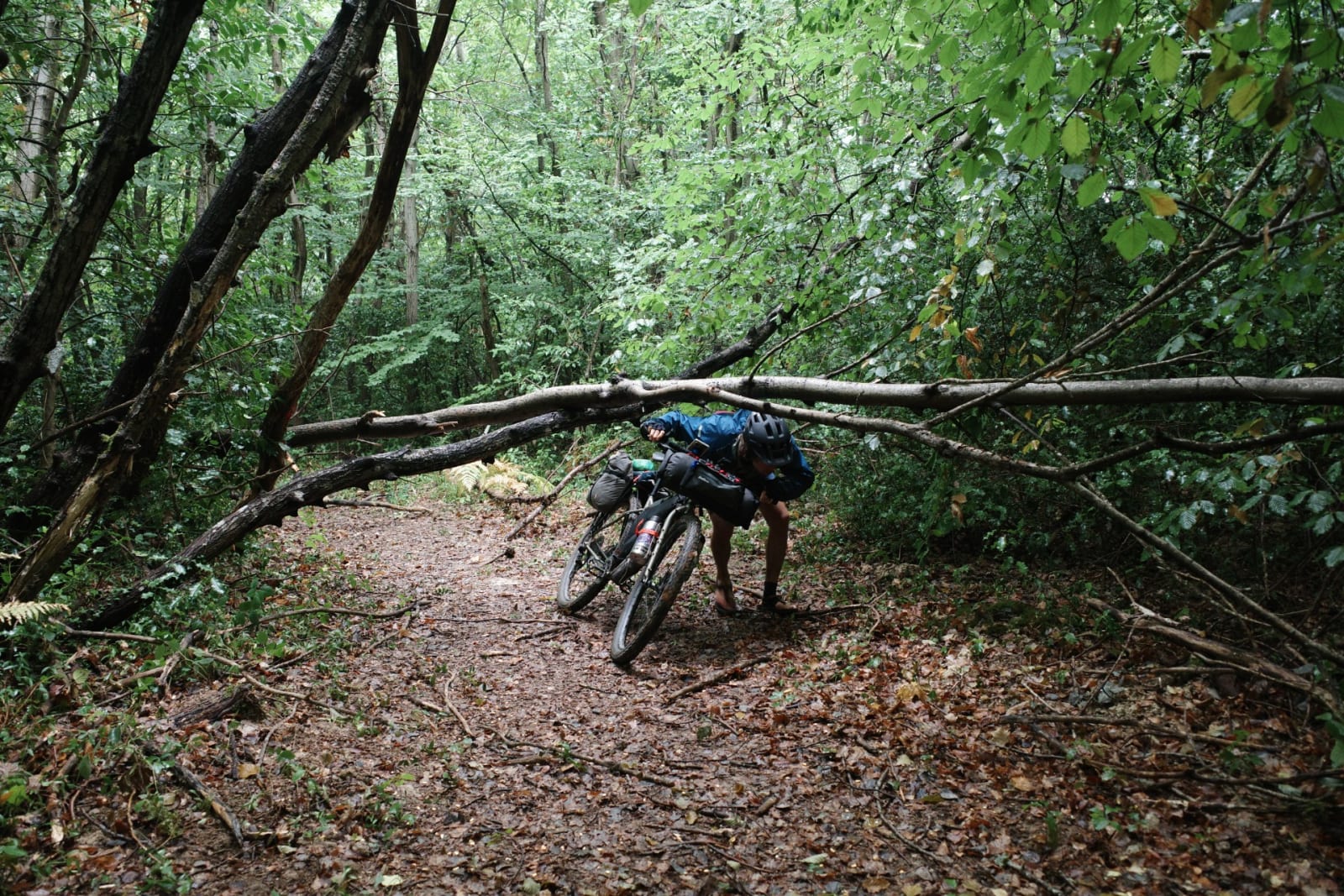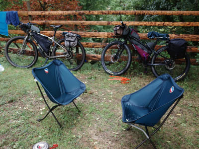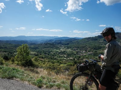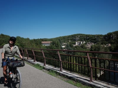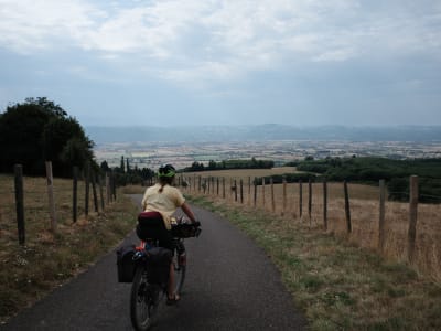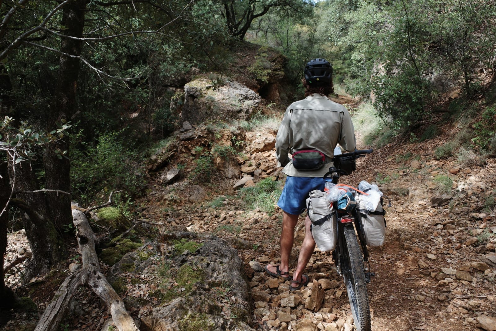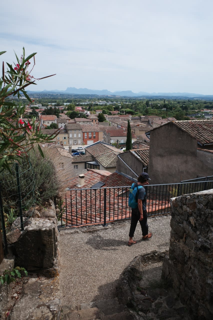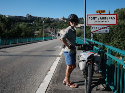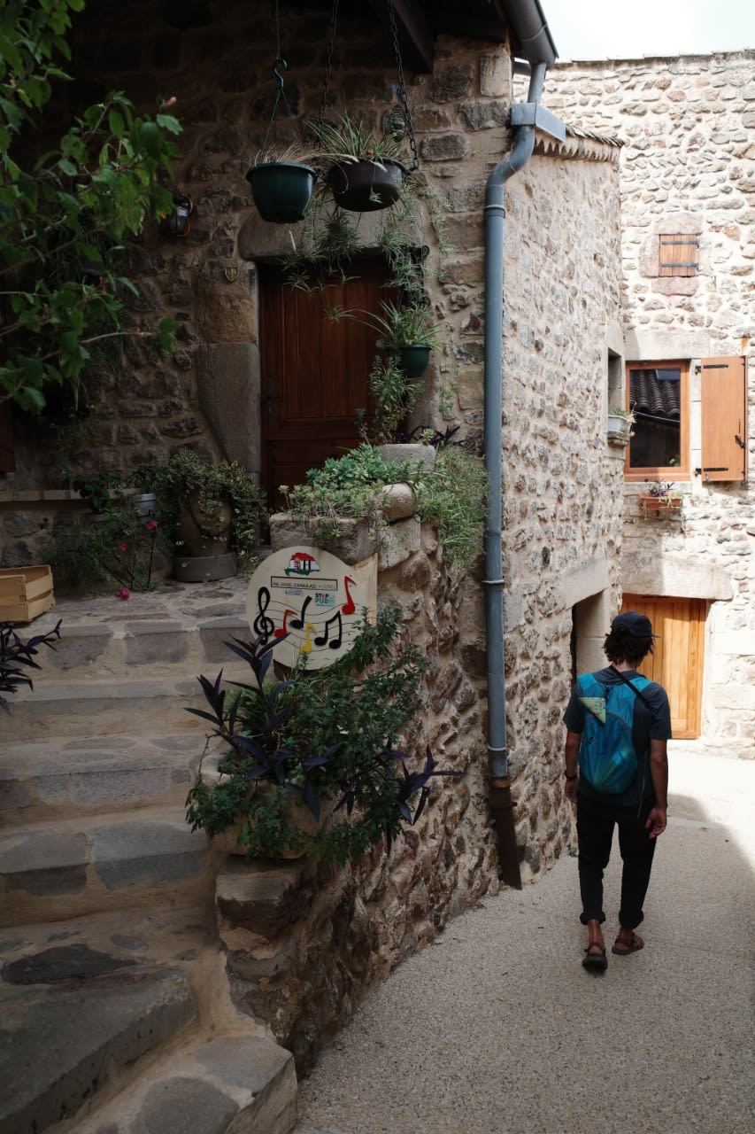 It was hard leaving Camping Robert and its private beach at Lake Paladru, but we did and continued riding west. The Isère region was full of excellent riding, full of little pilgrimage and GR trails. We quickly reached Valence - gateway to the Ardèche region - where we had our first warmshowers host! Warmshowers is a community of cyclists that offer each other just that: a warm shower and a bed or place to camp. Perfect for bigger cities like Valence that don’t have any campsites. It’s also free! Funnily enough, our host wasn’t home so we didn’t get the full-on social experience, but at least we had a place to pitch our tent. After a mix-up with the address, we finally arrived at the right house, rinsed off with a very cold garden hose shower, and enjoyed the garden all to ourselves — tucked away from the buzz of the city.