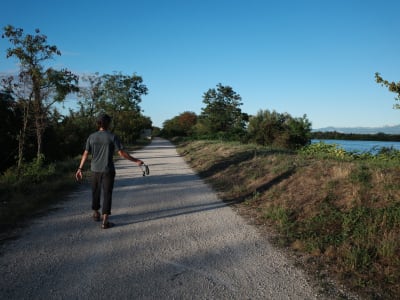 The riding has been surprisingly smooth lately. There’s not that many good off-road trails in these parts. We don’t mind and we were happy for some easier riding for a change. The scenery has been pretty spectacular and it’s been interesting to see it change to a more southernly one. There are plenty of vineyards, olive trees, and the plants definitely have gotten more spiky. There are wild fig trees everywhere that don’t have that many figs left when Babette passes them by. Seriously, she can’t stop plundering them once she has started. The fauna has changed too. We spotted the European bee-eater - with its striking plumage with green, blue and yellow- through our binoculars. We also saw pairs of beaver rats in the tributaries of the Rhône. Some of them were nursing adorable little pups. Migration has started and we’ve seen several flocks of storks heading in the same direction as we are.