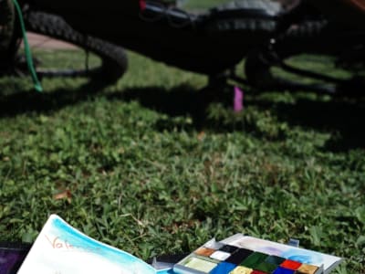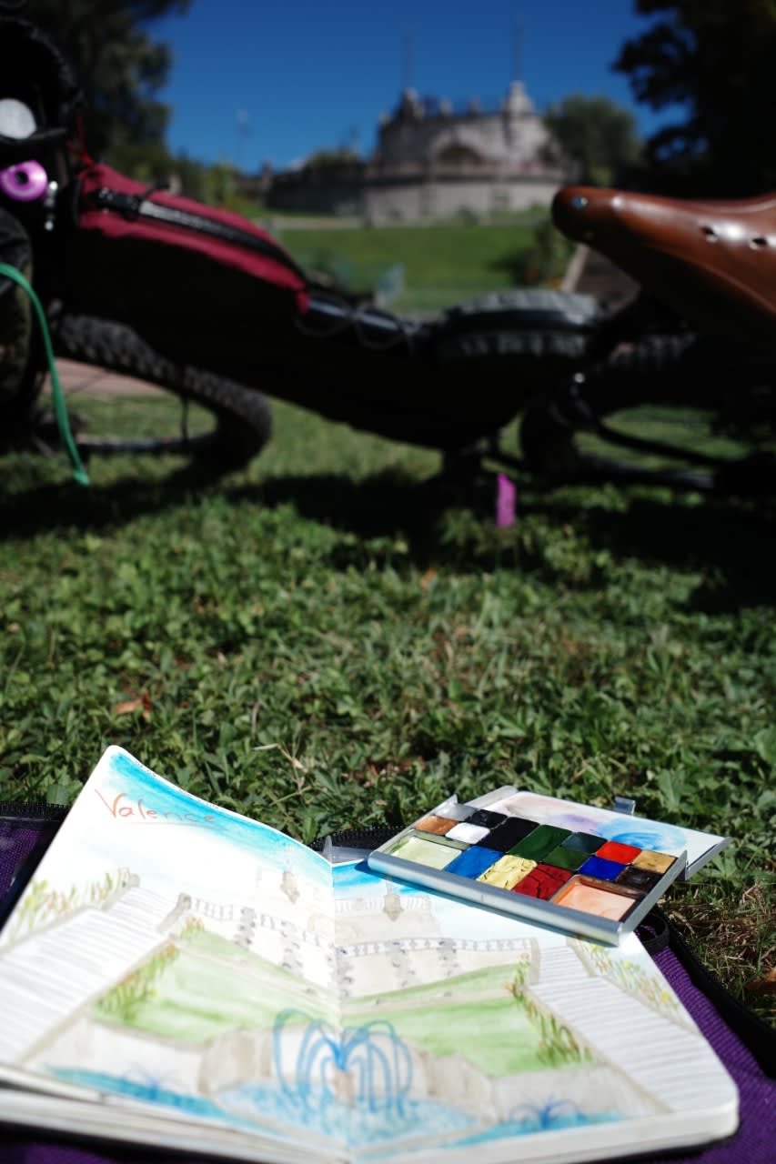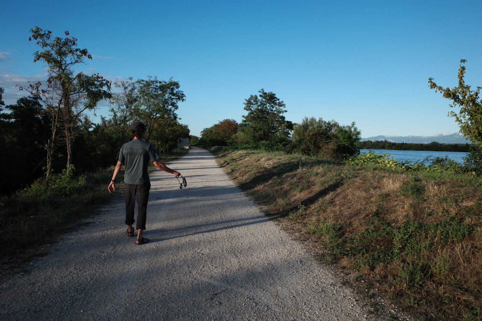 Having to stop moving was hard. Until then we had always pushed on with purpose, and now we had to pause because of something outside of our control. We really needed to change our mindset, and try to relax. That was surprisingly hard for us — but in the end, it gave us the chance to experience the trip differently. The campsite of Charmes sat right by the Rhône River and a busy cycling path, so we’d meet plenty of fellow cyclists and share stories. The local guingette was a lively place, crowded all day with passing travellers and where oftentimes people from the village would come over for karaoke and cabaret nights. Unfortunately sometimes until very late! We’d lie awake in the tent listening to very poor french singing. Don’t even get me started on the comedy nights. We spent our days hiking the surrounding mountains, jumping in the river, reading, drawing and playing music. And we’d cook lavish dinners with french, local wine in the evenings. Babette also got sick for a week - I guess our bodies were catching up with us.