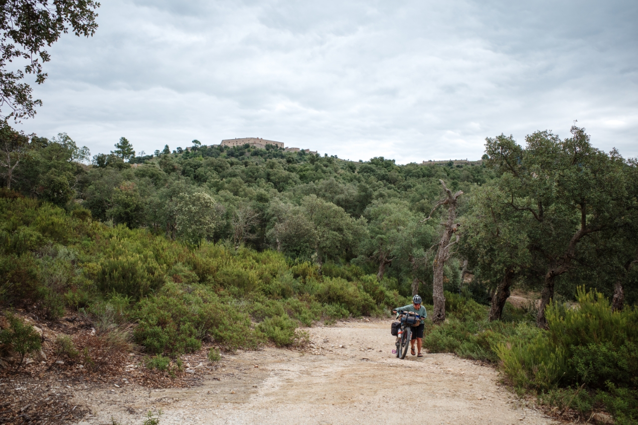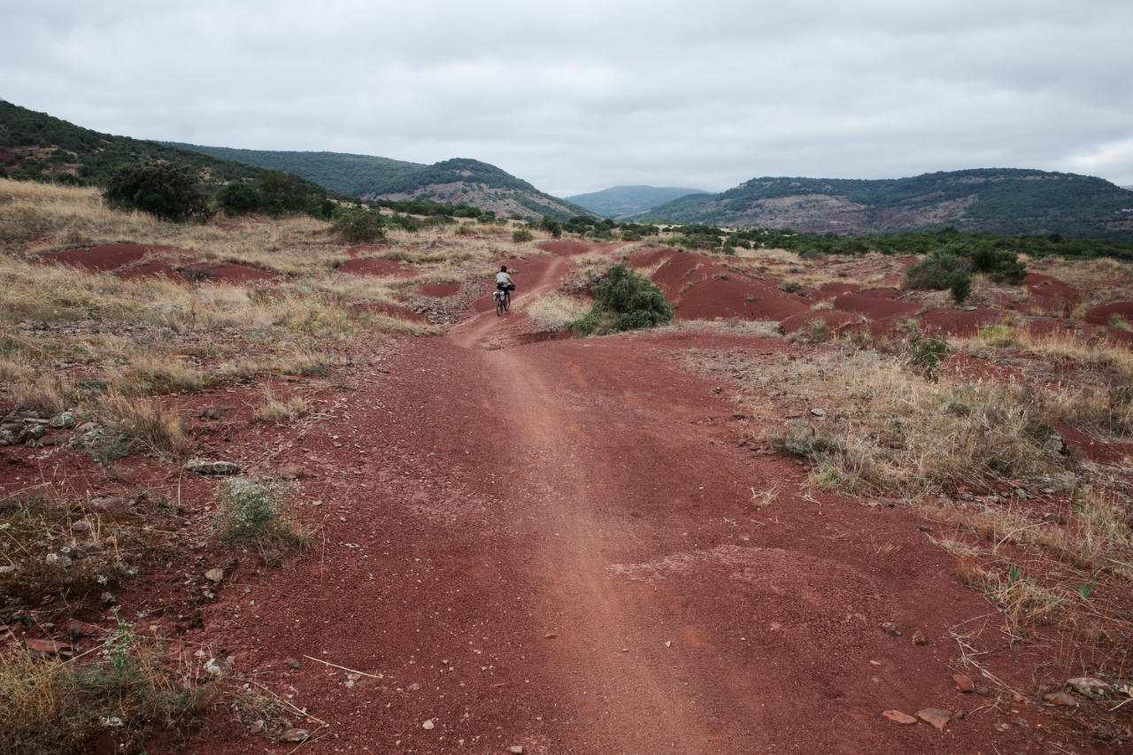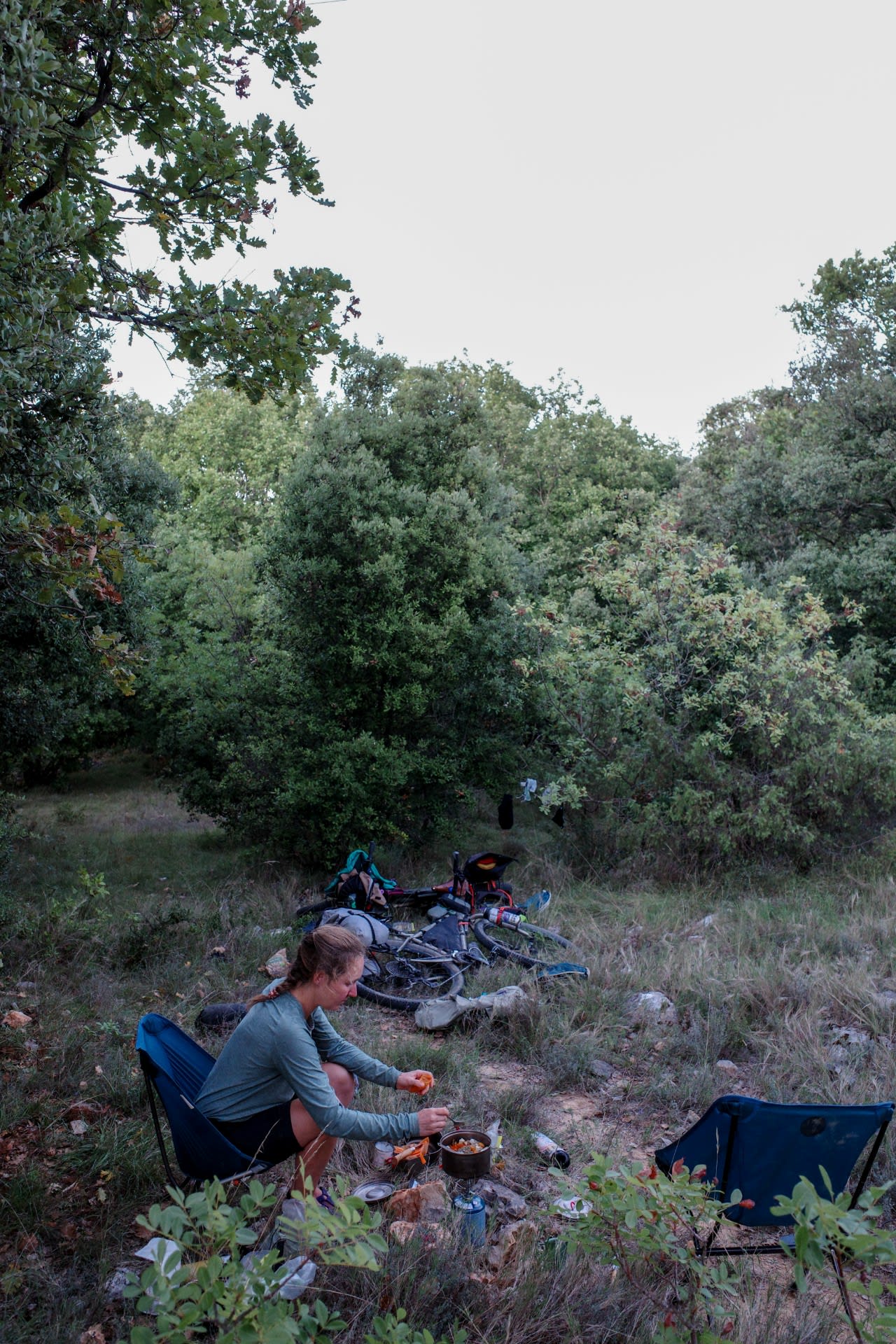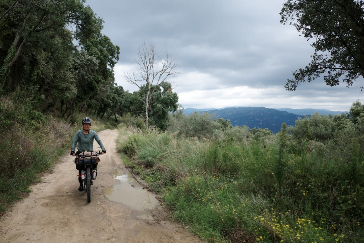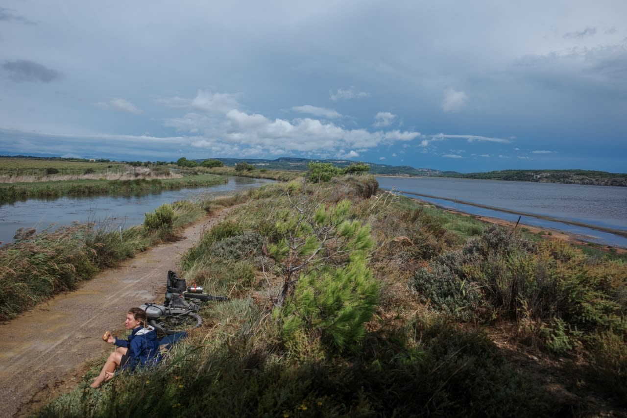 It was hard to leave the place, but we were also excited! The Mediterranean was getting closer, and we had our eyes set on it. We pedalled across this Martian landscape following some technical MTB trails. After that, we were mostly riding gravel trails between the vineyards of the South, crossing many little towns. The whole area is dominated by winegrowing, and it was hard to find good spots to pitch our tent for the night. The small woodlands we did find were too wild to camp in, so we hid in one of the winery domains and cooked our meal there. We pitched the tent at dusk and thought we were golden – but at three AM we heard the sounds of huge harvesting tractors nearby. We didn’t expect them to start that early. We were too alert to sleep after that, so we broke camp and had an early start to the day. We biked to the nearest town and had our coffee there instead! At least we didn’t get caught.