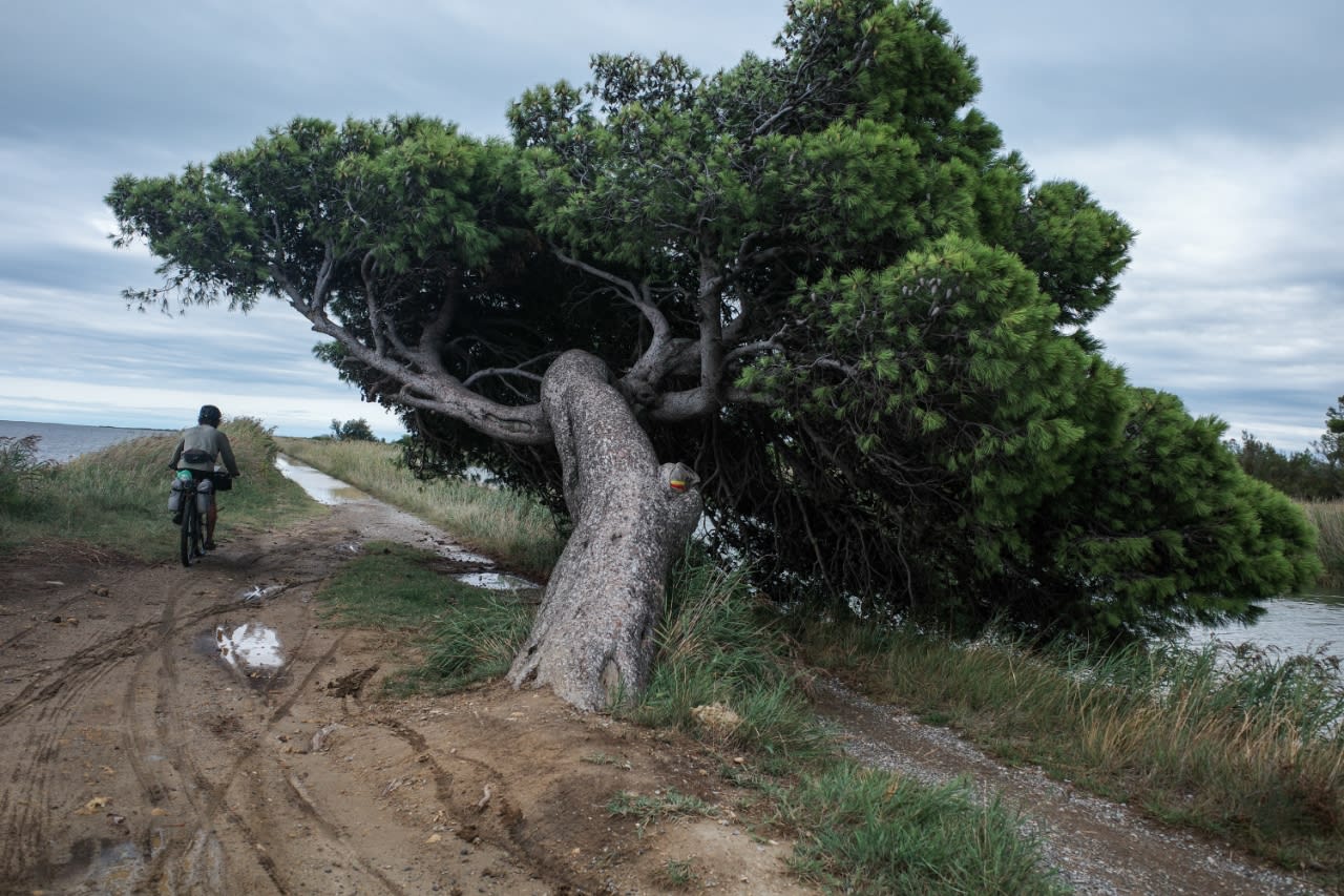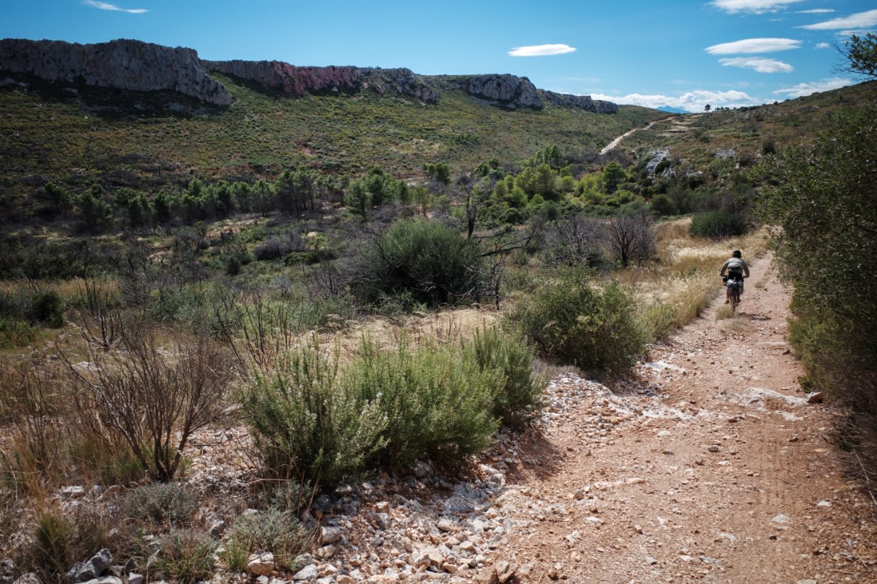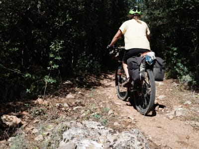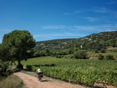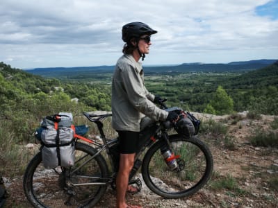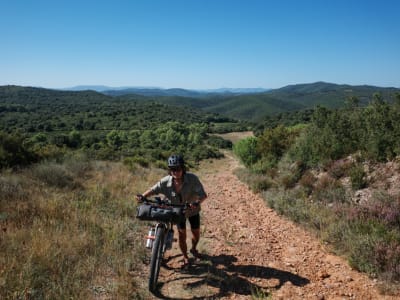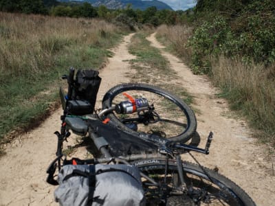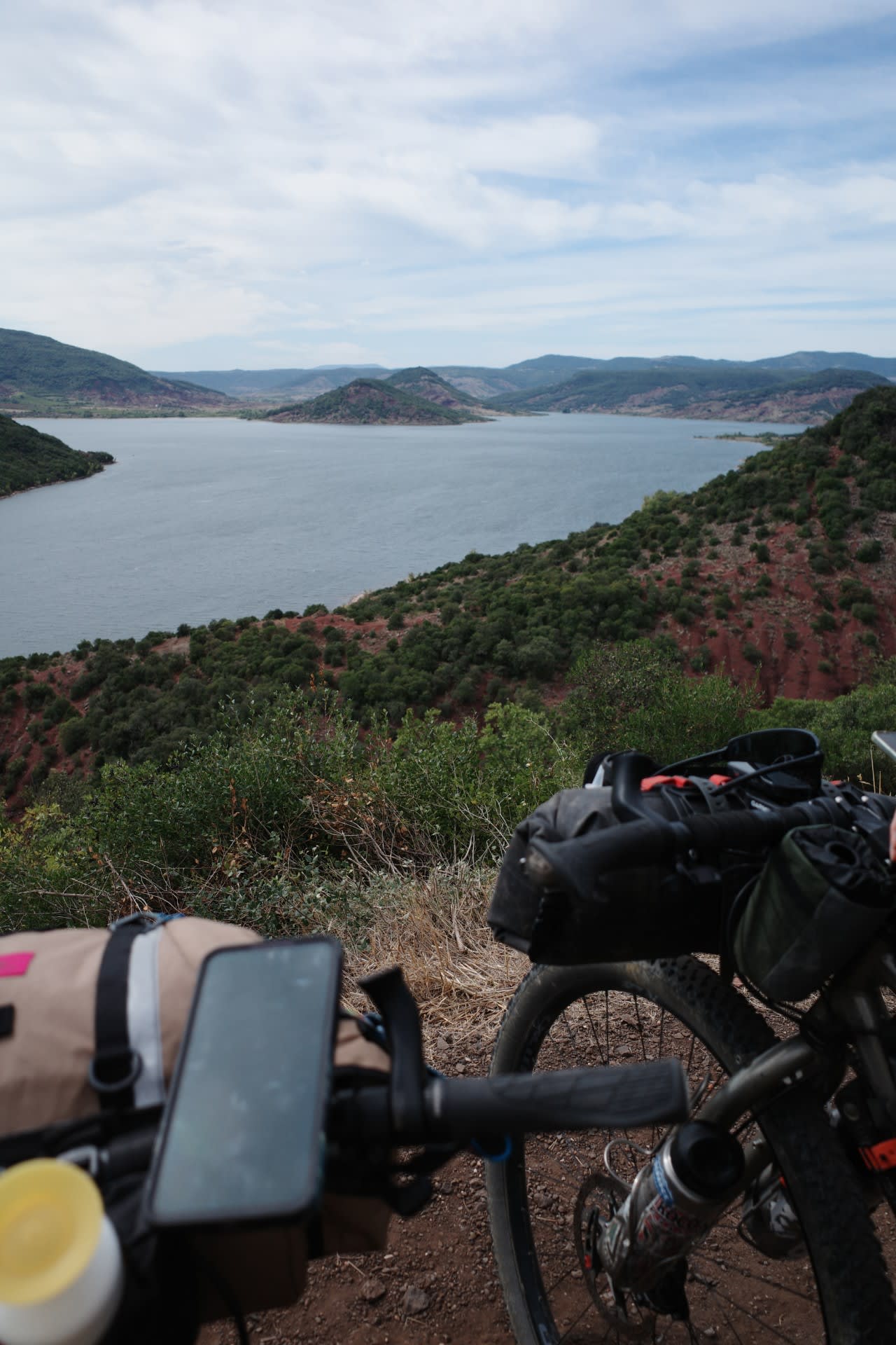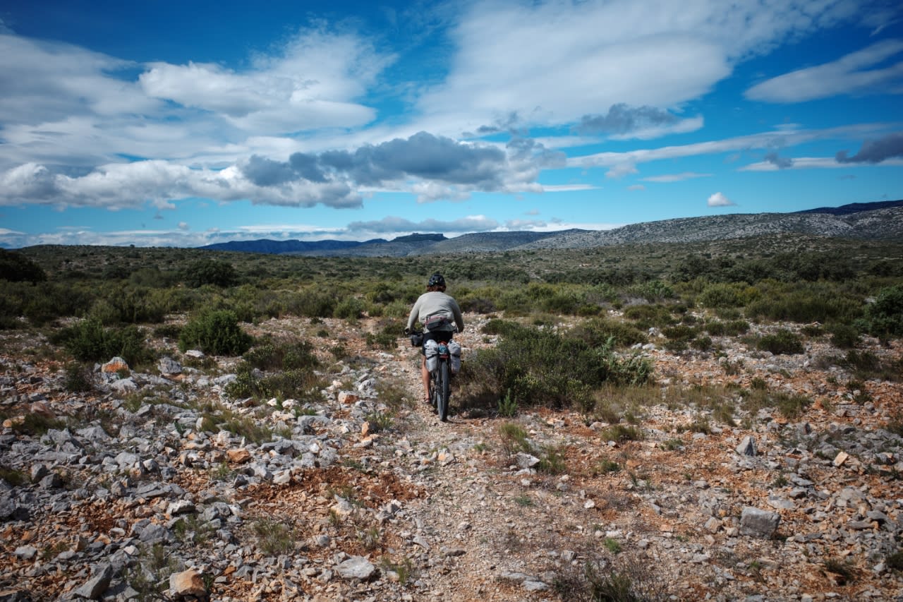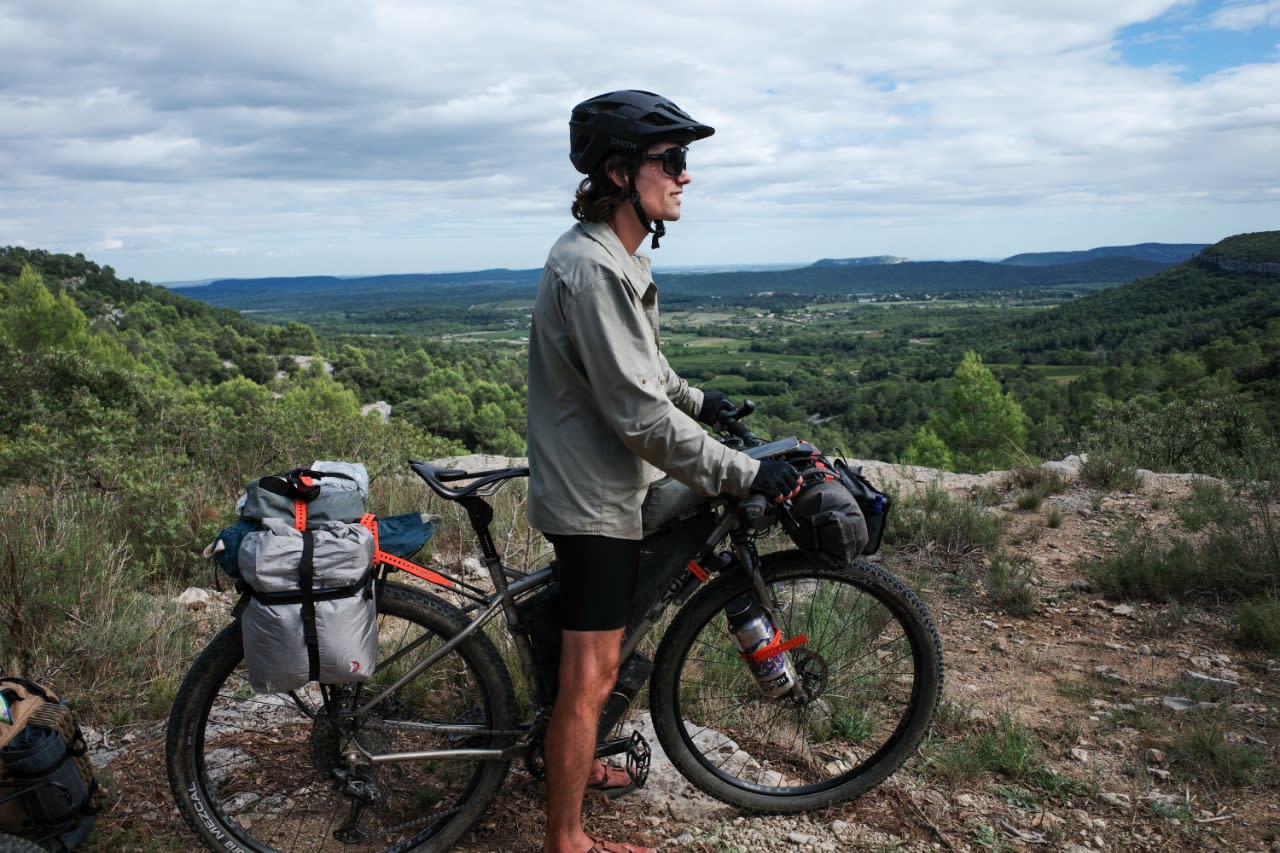 It was hard to leave the place, but we were also excited! The Mediterranean was getting closer, and we had our eyes set on it. We pedalled across this Martian landscape following some technical MTB trails. After that, we were mostly riding gravel trails between the vineyards of the South, crossing many little towns. The whole area is dominated by winegrowing, and it was hard to find good spots to pitch our tent for the night. The small woodlands we did find were too wild to camp in, so we hid in one of the winery domains and cooked our meal there. We pitched the tent at dusk and thought we were golden – but at three AM we heard the sounds of huge harvesting tractors nearby. We didn’t expect them to start that early. We were too alert to sleep after that, so we broke camp and had an early start to the day. We biked to the nearest town and had our coffee there instead! At least we didn’t get caught.