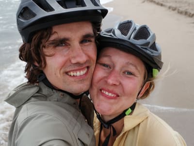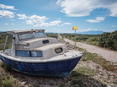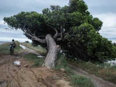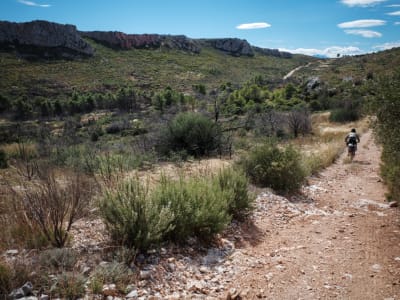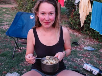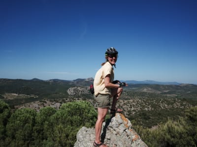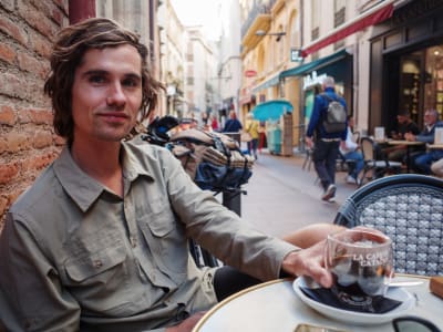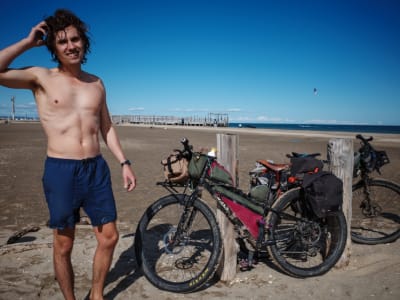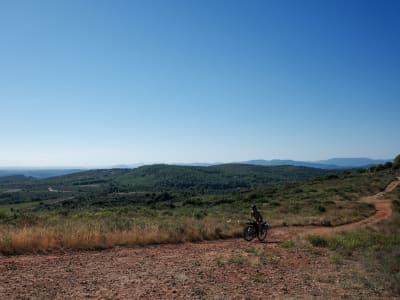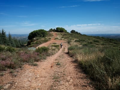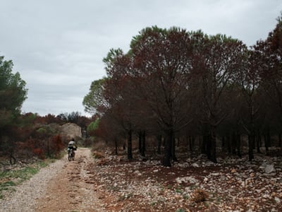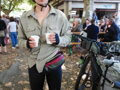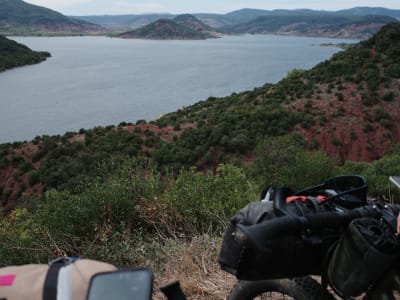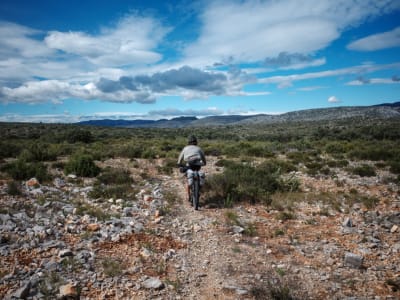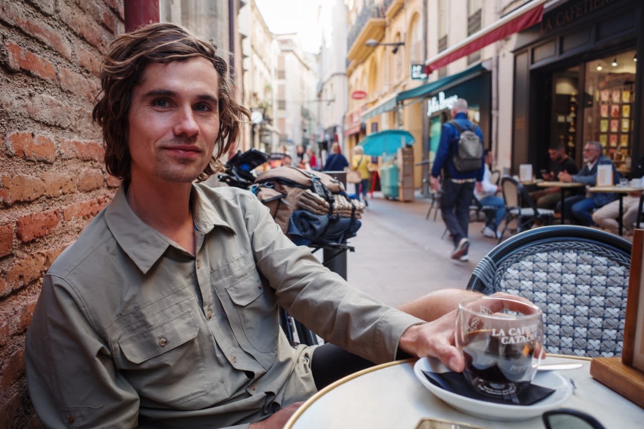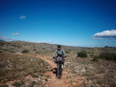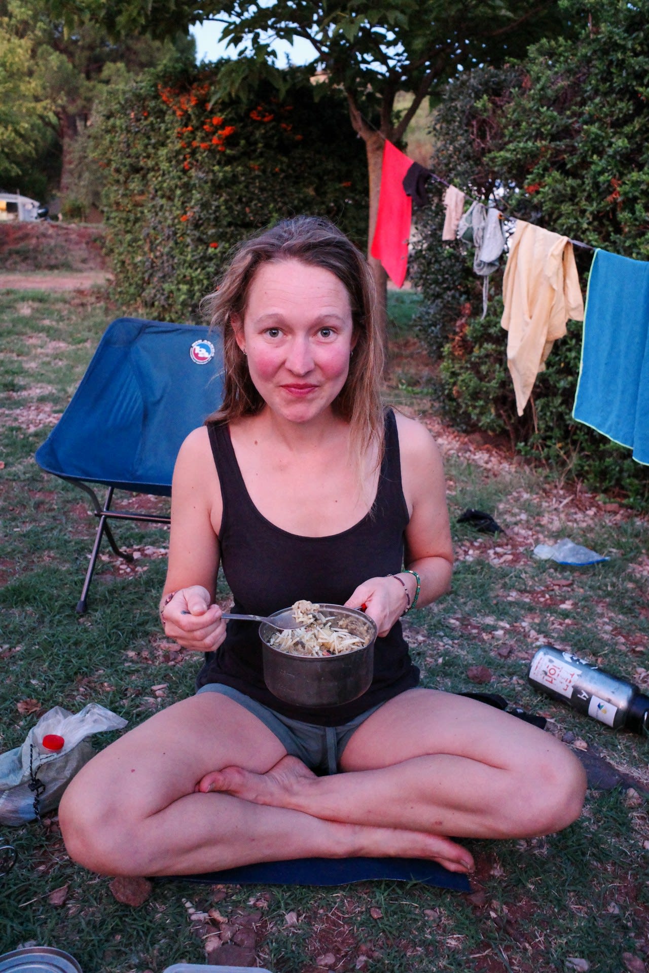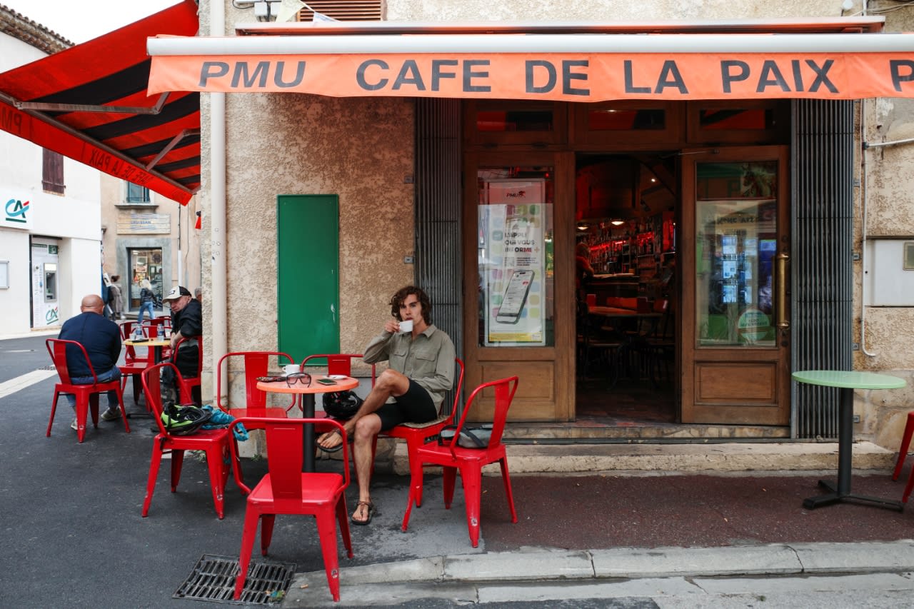 It was hard to leave the place, but we were also excited! The Mediterranean was getting closer, and we had our eyes set on it. We pedalled across this Martian landscape following some technical MTB trails. After that, we were mostly riding gravel trails between the vineyards of the South, crossing many little towns. The whole area is dominated by winegrowing, and it was hard to find good spots to pitch our tent for the night. The small woodlands we did find were too wild to camp in, so we hid in one of the winery domains and cooked our meal there. We pitched the tent at dusk and thought we were golden – but at three AM we heard the sounds of huge harvesting tractors nearby. We didn’t expect them to start that early. We were too alert to sleep after that, so we broke camp and had an early start to the day. We biked to the nearest town and had our coffee there instead! At least we didn’t get caught.