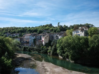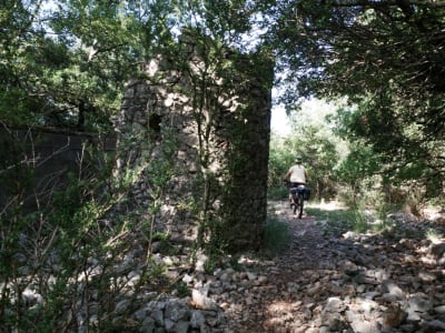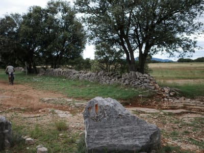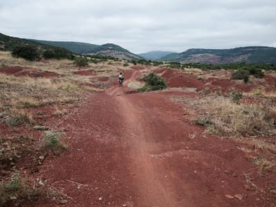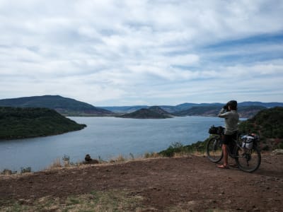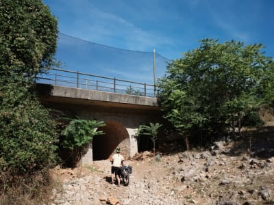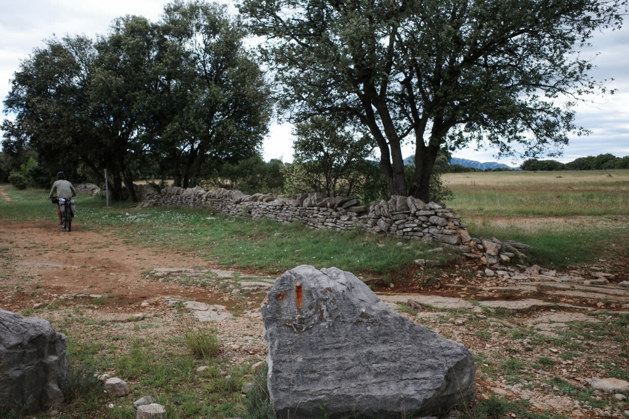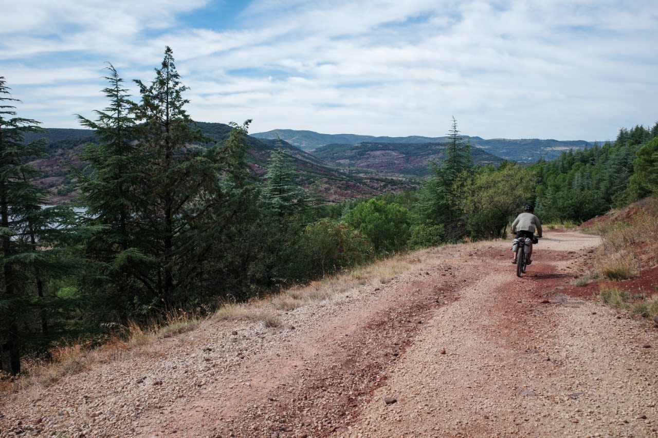 We left Camping La Fief near Alès and continued our way through the southern foothills of the Cévennes. The smooth riding we’d had in the previous days quickly ended, and we found ourselves riding some nice and rocky trails in garreau country – mostly limestone plateaus, ridges, and gorges. The flora was also very different to anything we’re used to, and we were inundated with the delicious scents of wild rosemary, lavender, and thyme. We harvested some for our meals at night! Suddenly, the trails were also lined with cacti and Aloe Vera plants, and lizards, big and small, were crawling between them. Spiky plants would occasionally cut open our legs and feet, but we felt so lucky to be riding here. We were really in the South of Europe now.