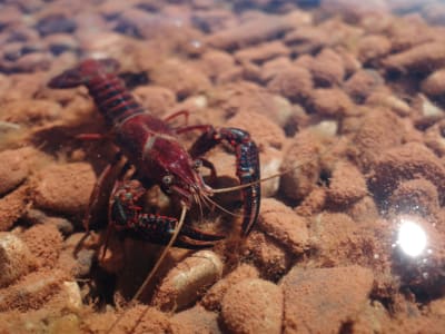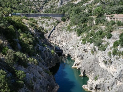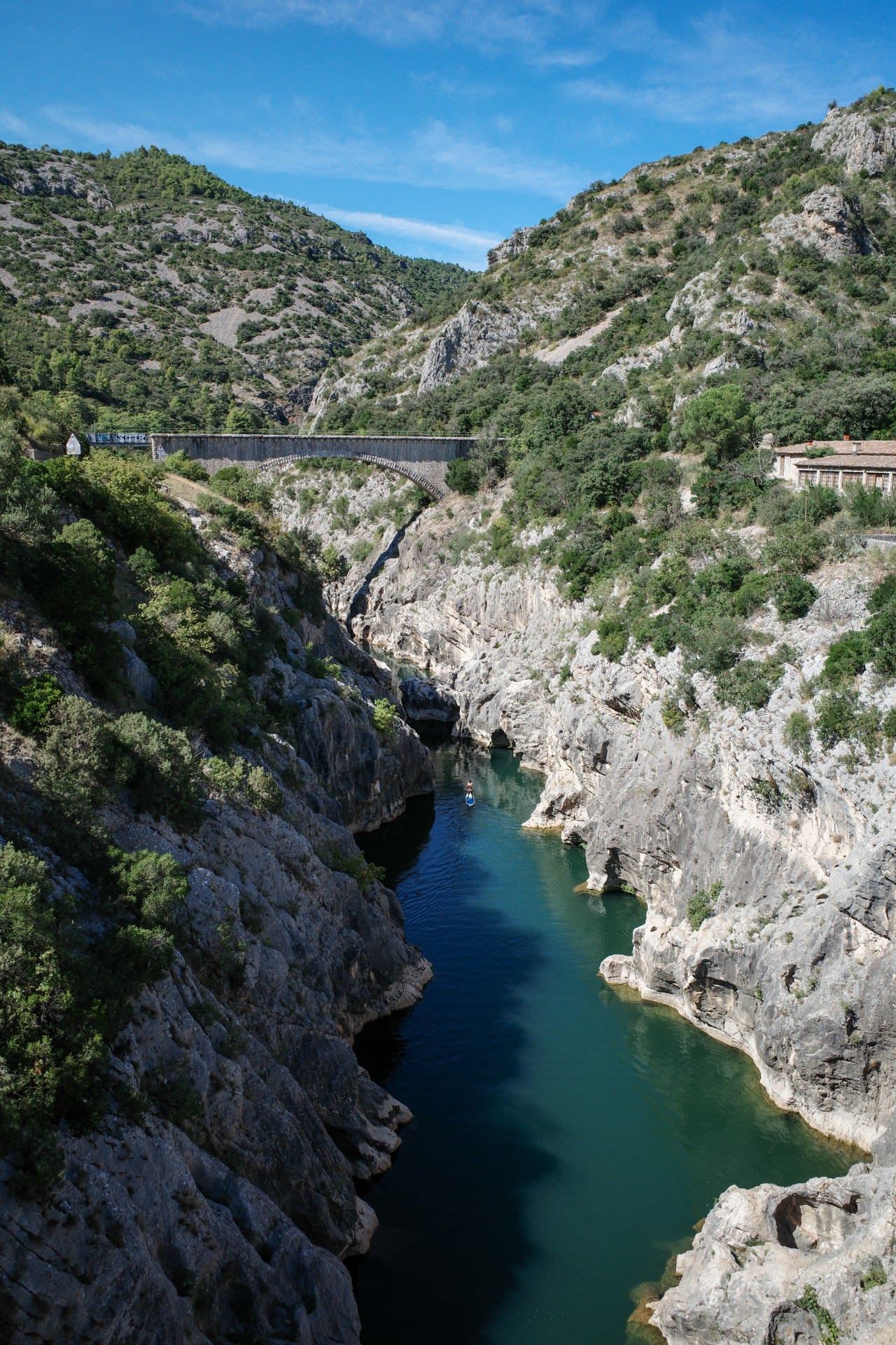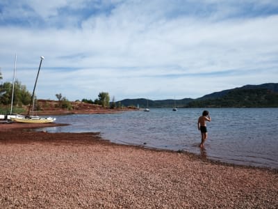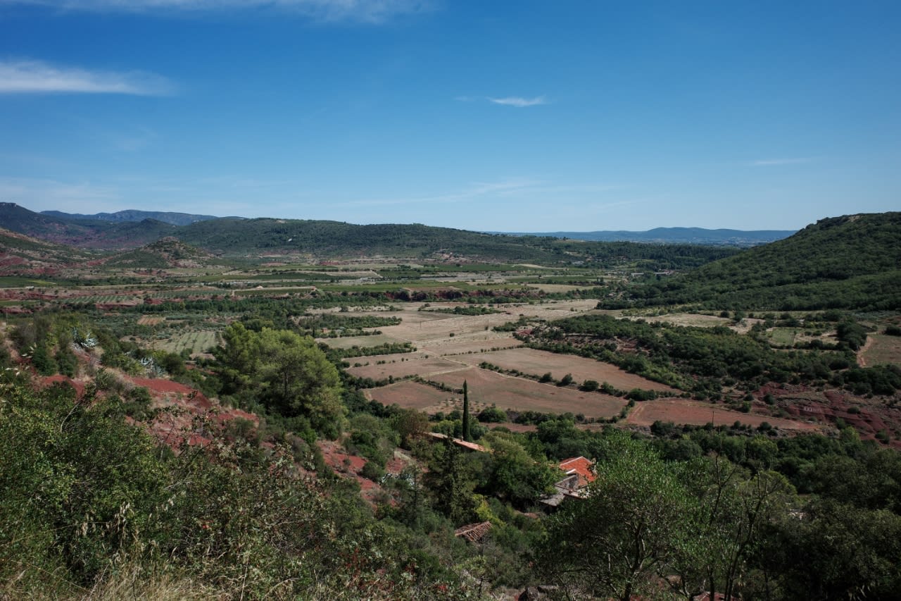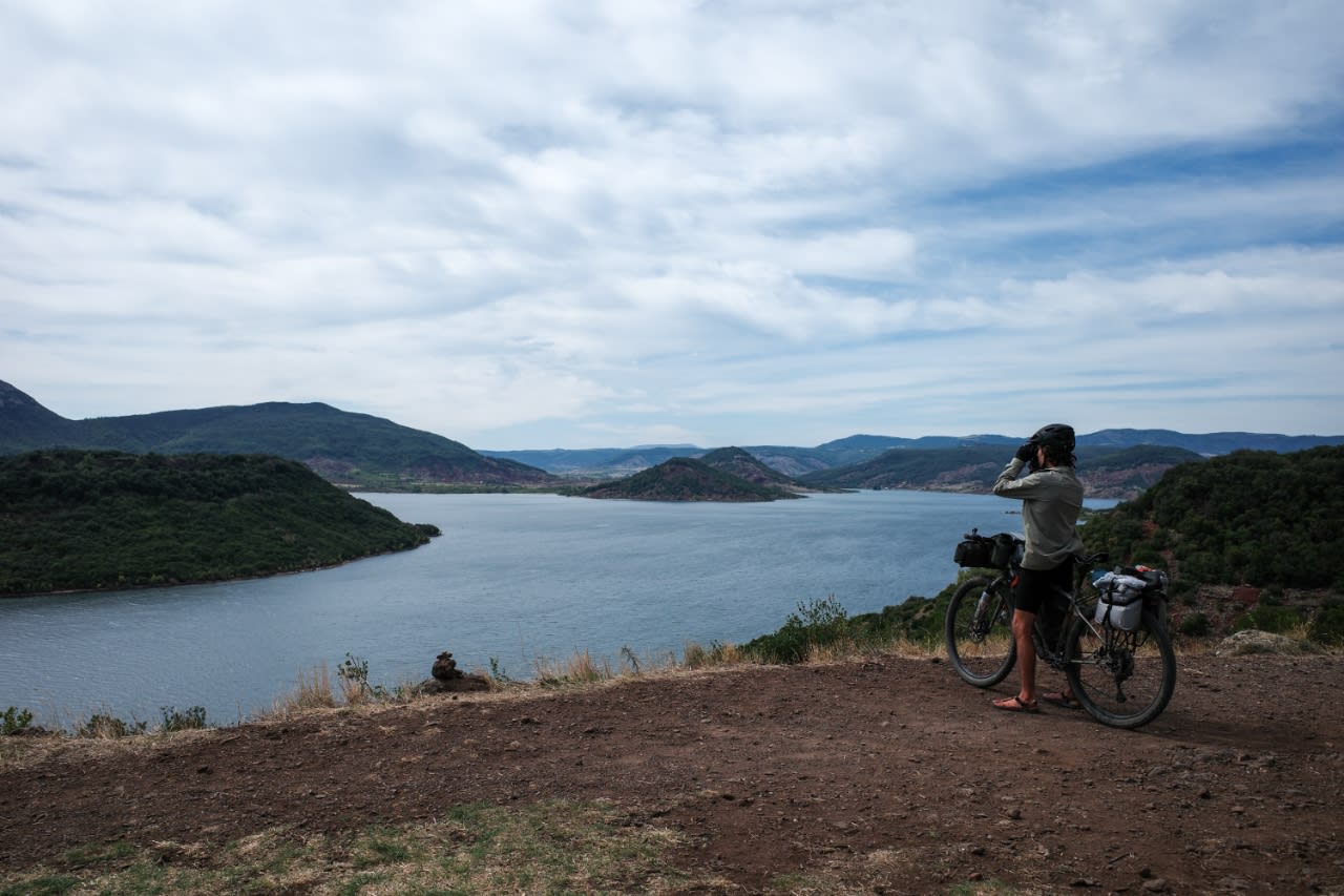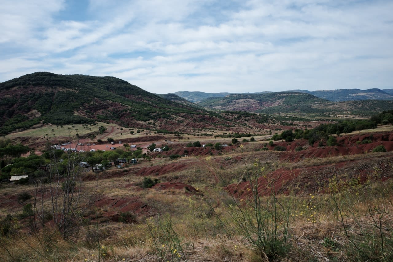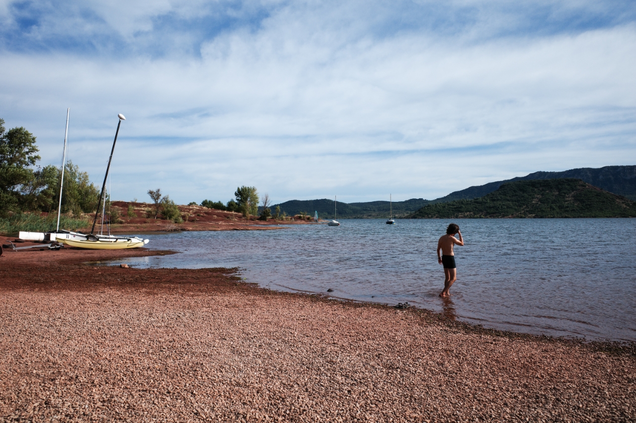 The landscape changed again completely when we reached Lac du Salagou. The lake is famous for its red ruffe soils – an iron-rich sandstone which gives the whole area a distinctive volcanic, almost Martian vibe. There was a campsite right on its shore, and we decided to profiter and spend two days there. We were lucky since the place was pretty quiet due to the touristic low season. We were feeling serious vacation vibes, and we spent our time walking along its shore, bathing in the sun, and cooling off in the lush water of the lake. There was a nice beach bar too.