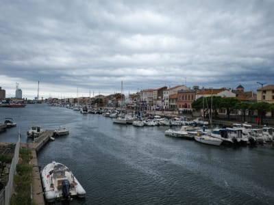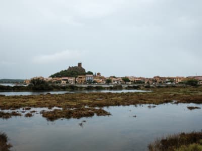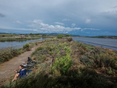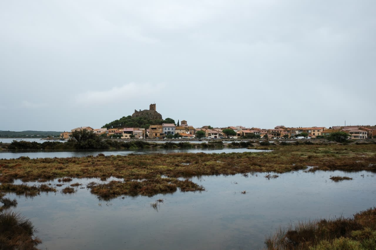 We biked along the Mediterranean Sea and passed several lovely seaside towns, such as Gruissan and La Palma – which, as the name suggests, is indeed dotted with palm trees! The coastline is filled with coastal lagoons (étangs) and salt flats (salins) that provide a safe haven for wildlife. We relaxed two days in La Palma to hike along the salins and swim in the sea at plage La Rouet. The winds are relentless in this area. The wind actually gets funnelled from the Atlantic Ocean to the Mediterranean Sea through the Pyrenees. We would get sandblasted when we got out of the sea, and despite the warm temperatures, we were pretty cold during our time there. We got out our binoculars and saw hundreds of flamingos roaming the salt flats. We’d spot plovers and gulls, and there were kingfishers everywhere we looked. A spectacular place.