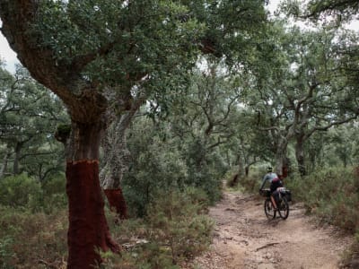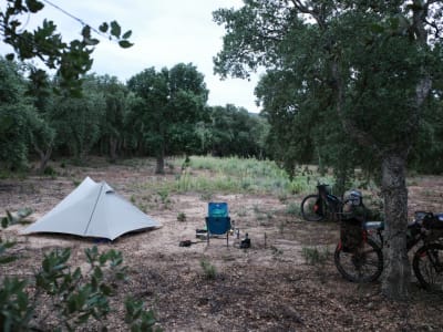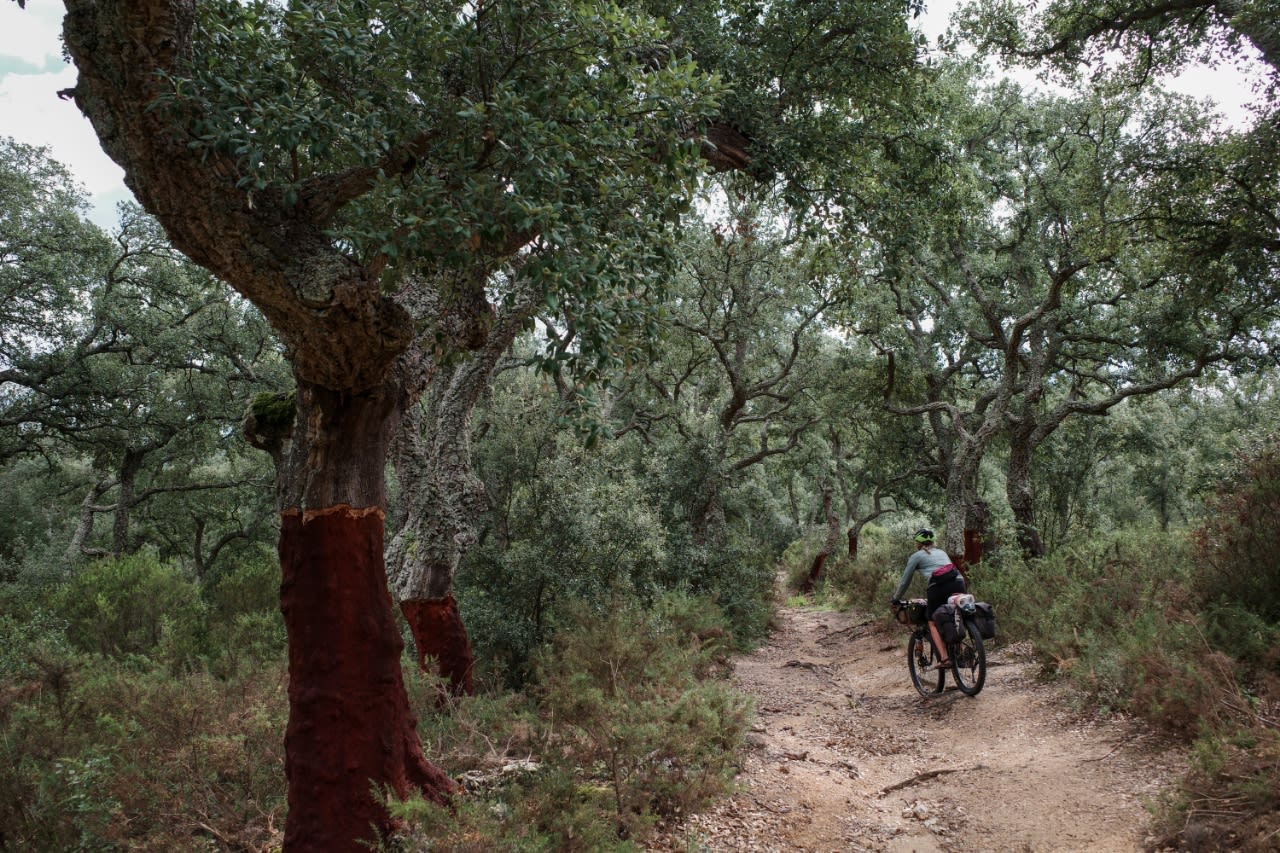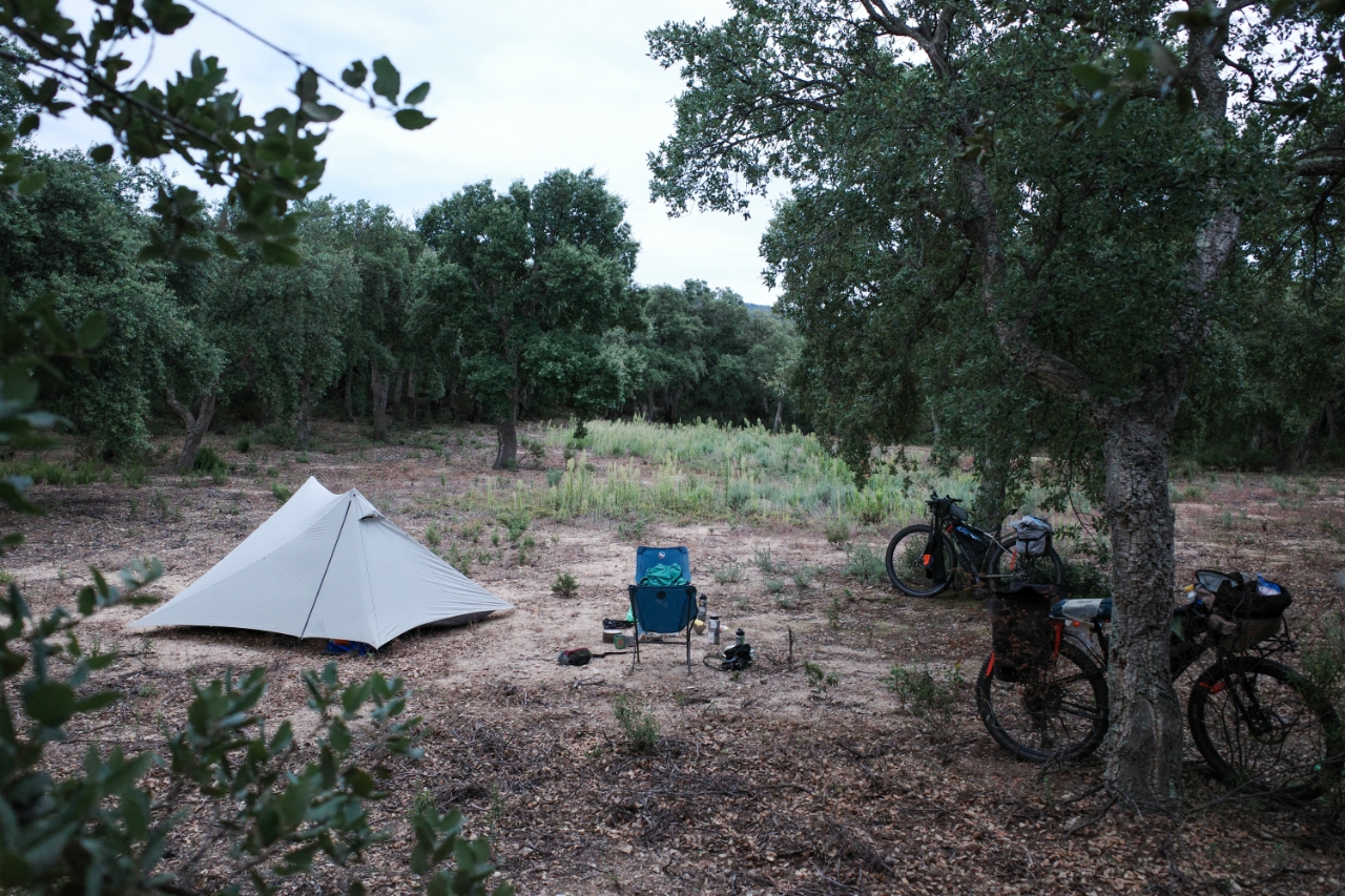 We crossed into Spain over a low pass in the Pyrenees. We were happy to find a beautiful, open clearing in the woods up there. One of our best spots yet! It was full of beautiful cork oak trees. But we didn’t sleep much. We spotted some huge wild boar at dusk. Of course, the clearing was full of acorns, and they love those! The whole night was filled with their grunts, growls, oinks, and snores, and we could hear them munching away. I got out of the tent three times, but after that we gave up and just let them have at it. Don’t worry, we survived.