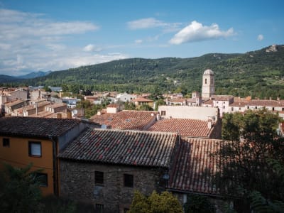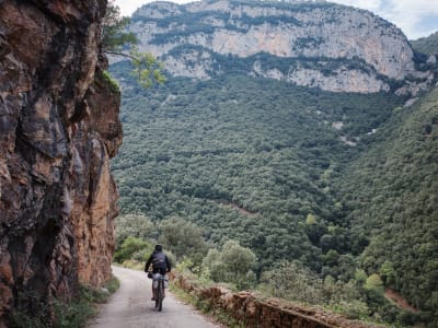 We slowly climbed our way through Alta Garrotxa, a wild, mountainous region in the eastern foothills of the Pyrenees. The climb began gradually, but the terrain quickly became wilder and more technical. Feeling pretty proud that we didn’t push the bikes once, we reached the Coll de Riu at noon! The landscape changed dramatically on the other side of the pass as we descended into an incredible valley filled with limestone peaks and vultures circling overhead. Soon after, we rolled into Olot — a charming small city nestled in an extinct volcanic landscape.