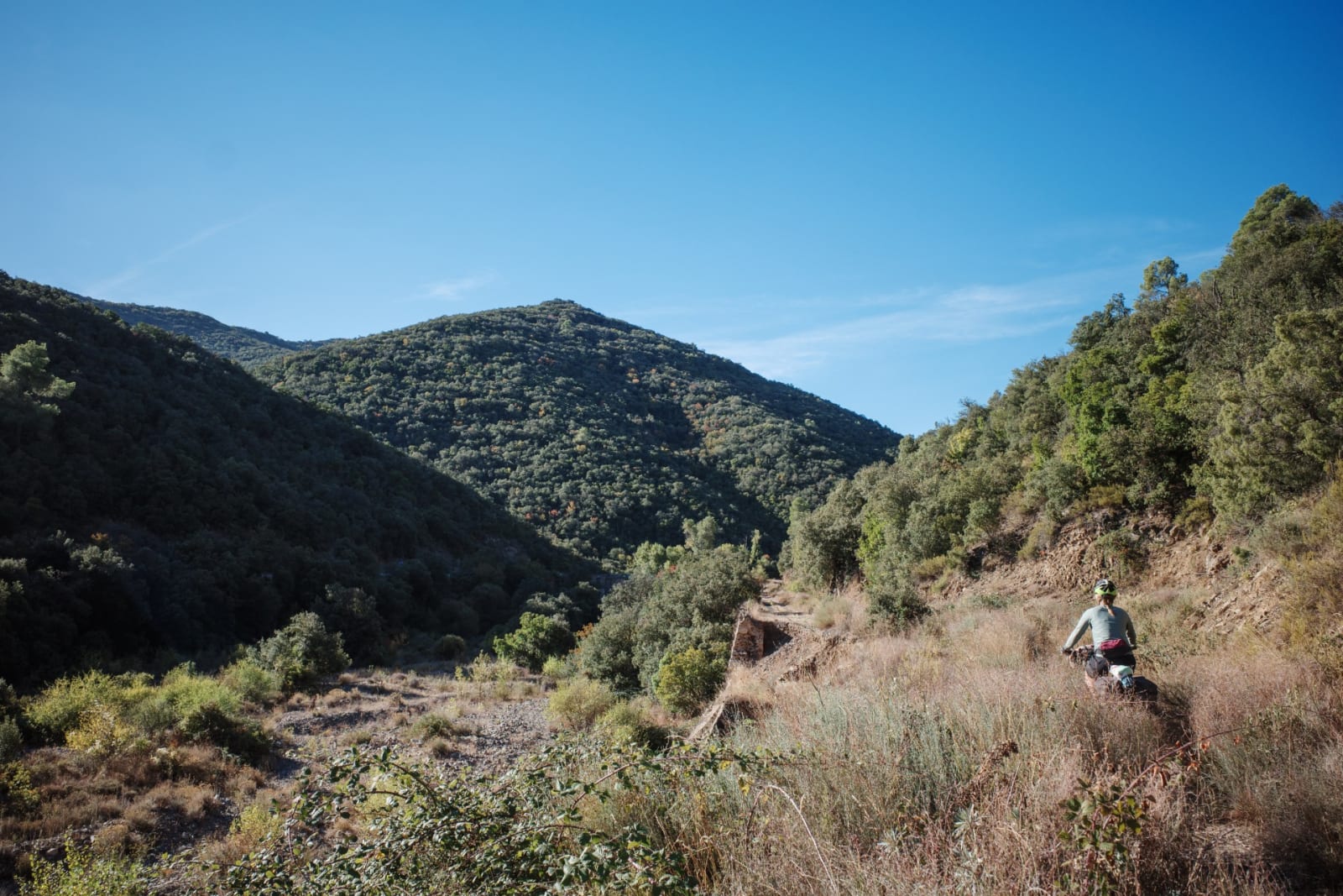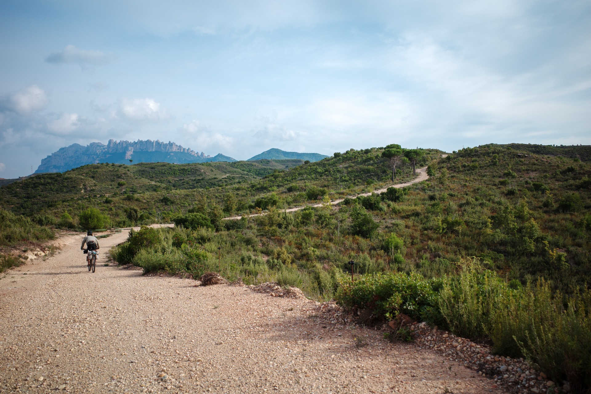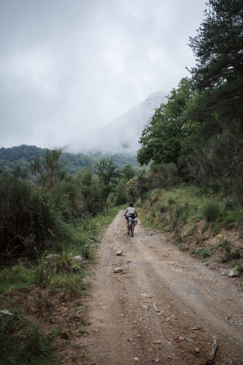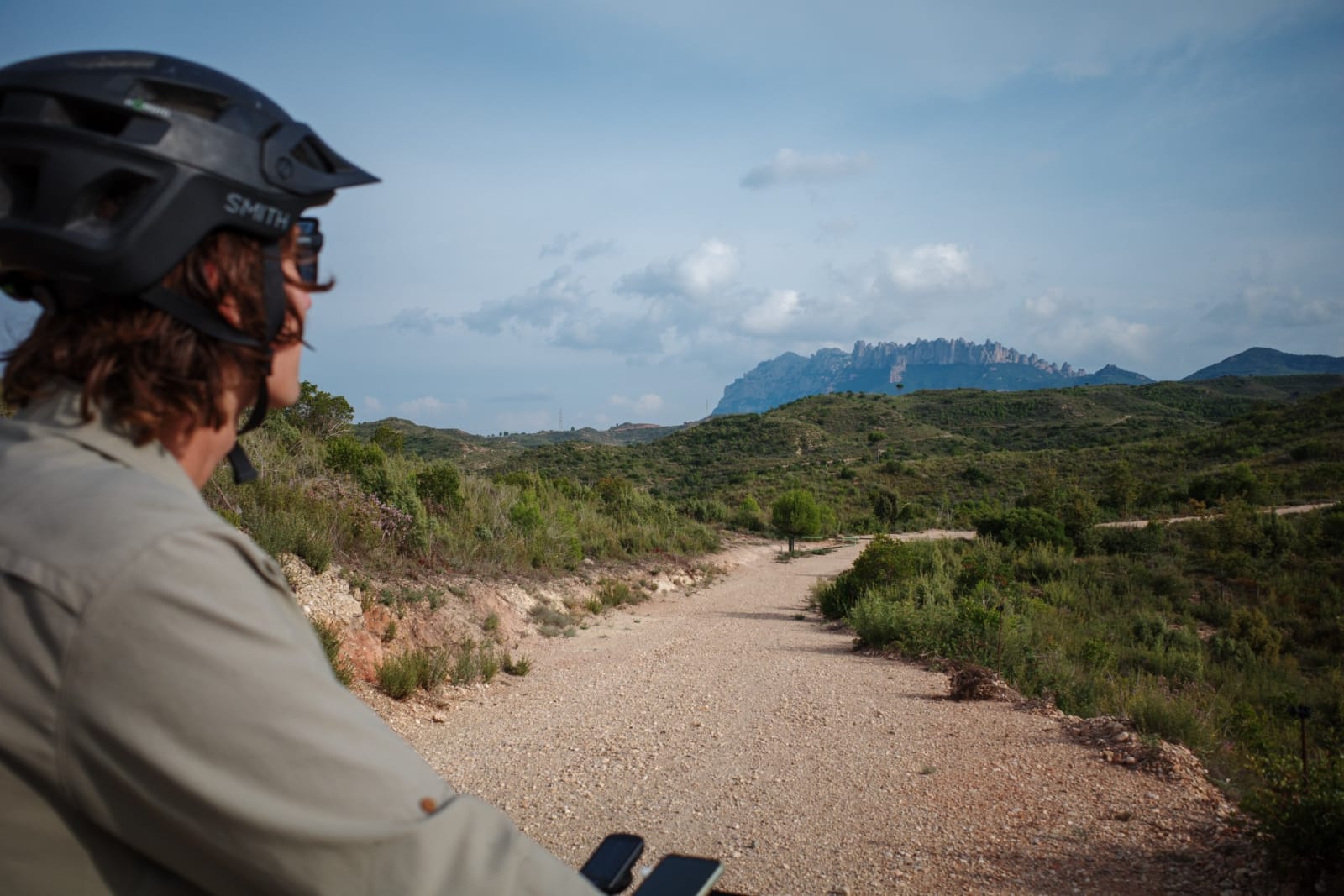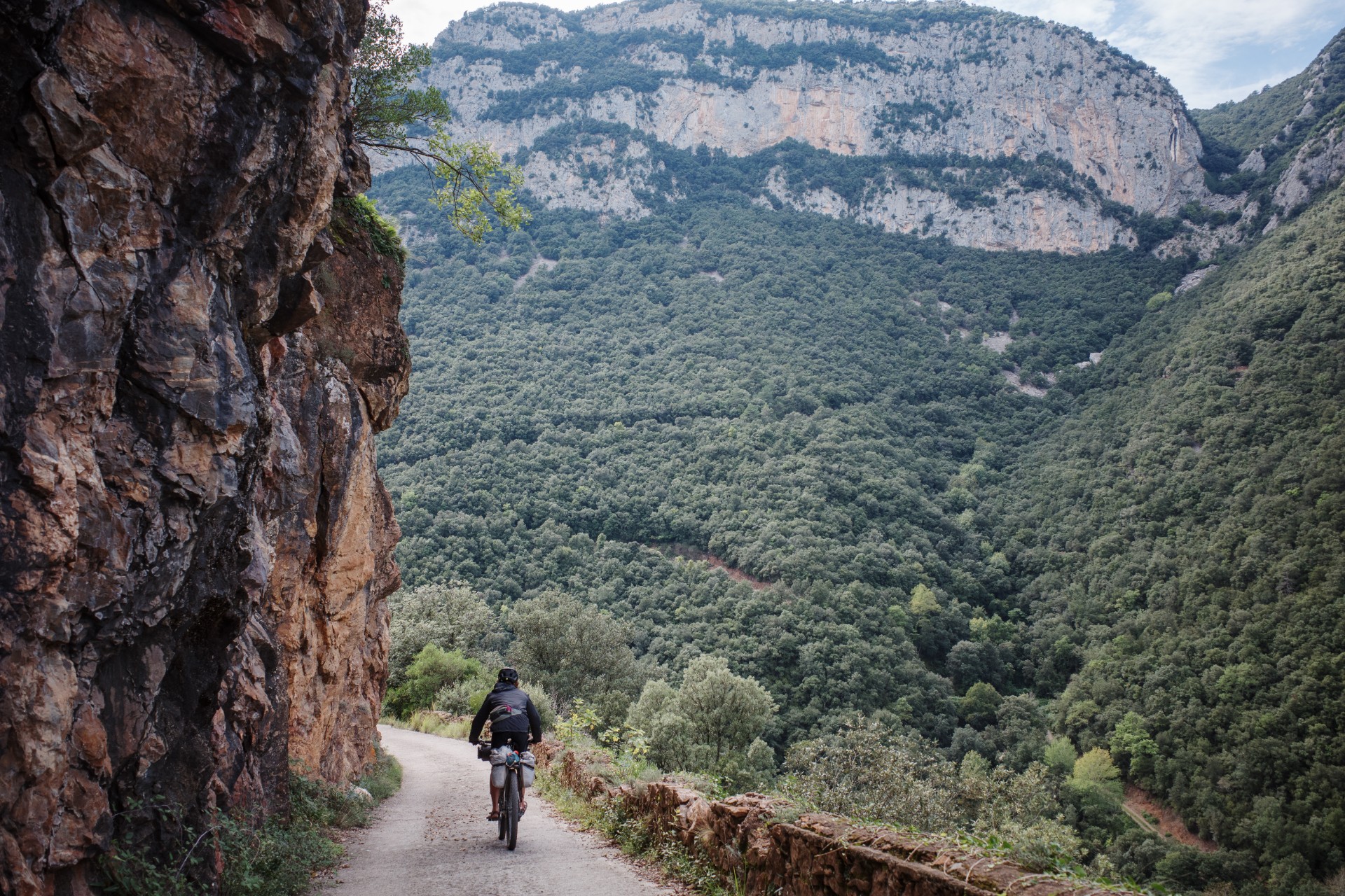 After that, we had some of our best days on the bike yet! We followed dirt roads along the mountains north of Barcelona. Soon, Montserrat was providing an incredible backdrop as we climbed steep ridges and descended into stunning valleys. There’s no denying that riding in Spain is often tough — most days were filled with very steep, drawn-out climbs on loose rock. Our hearts would sink each morning when looking at the elevation map on our Garmin. Sometimes, the route made no sense at all either, leading us up brutal trails seemingly just for the sake of it. We’d push our bikes up, cursing, but the views were amazing, and we were having a blast — definitely type 2 fun at times.