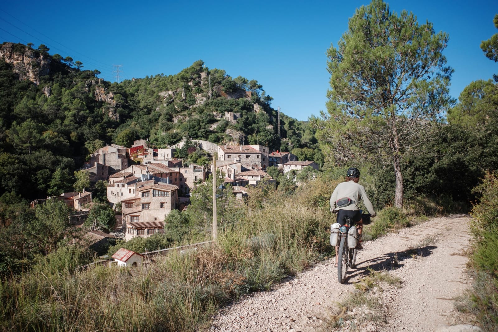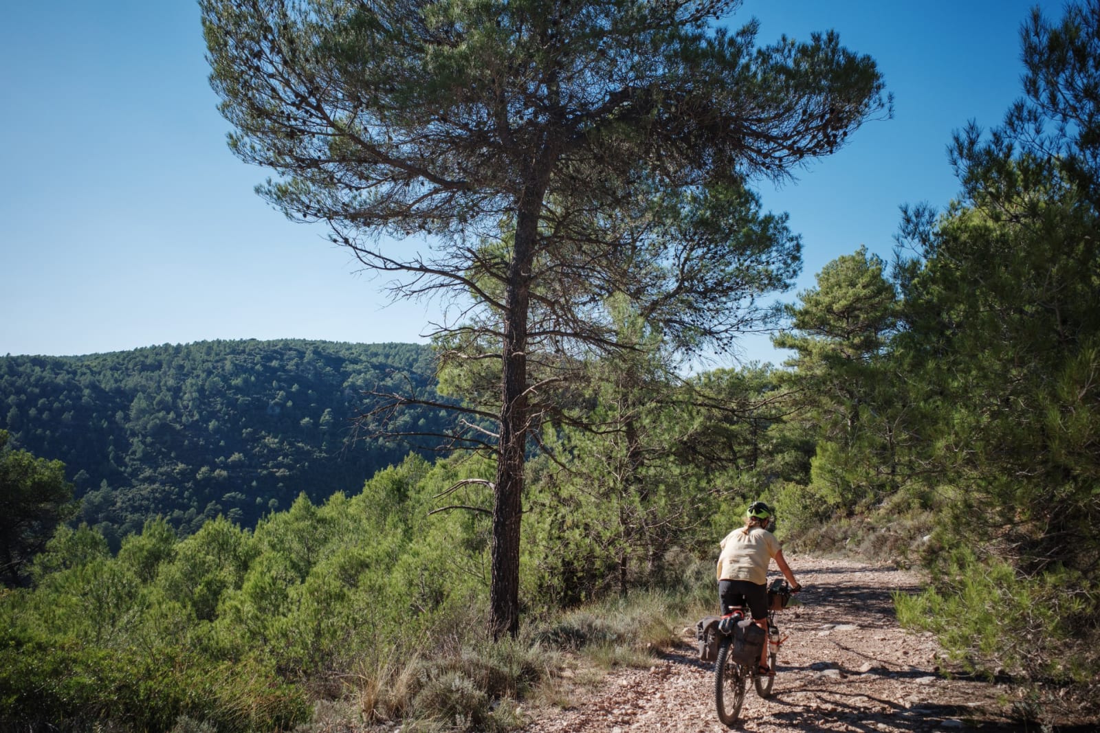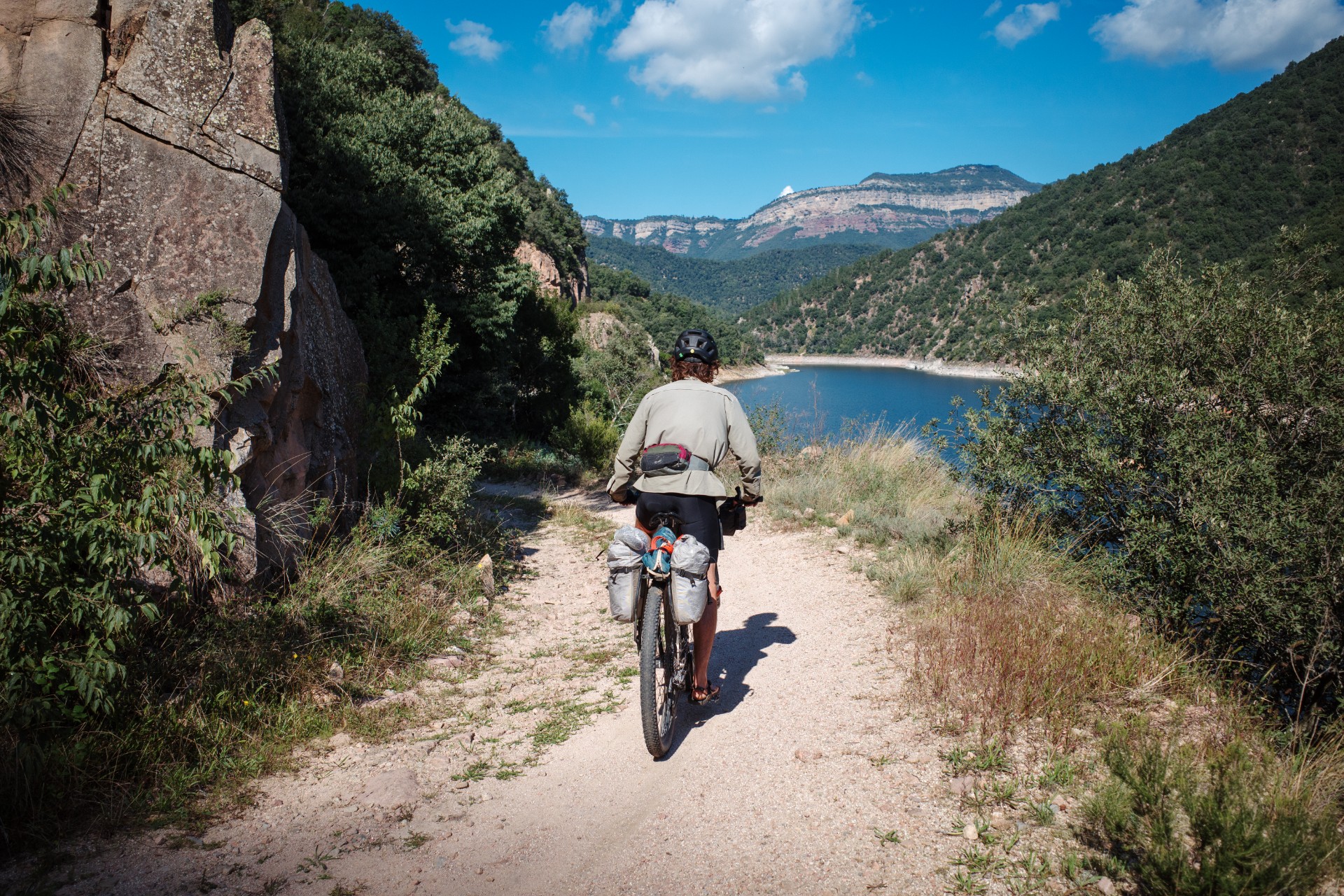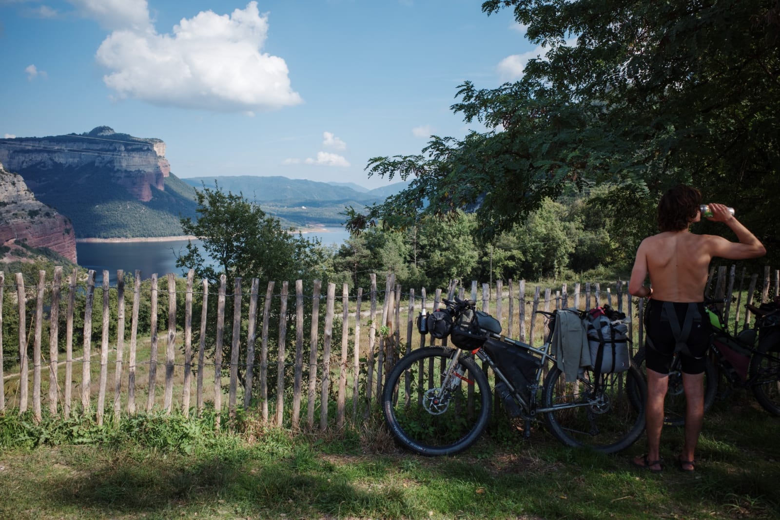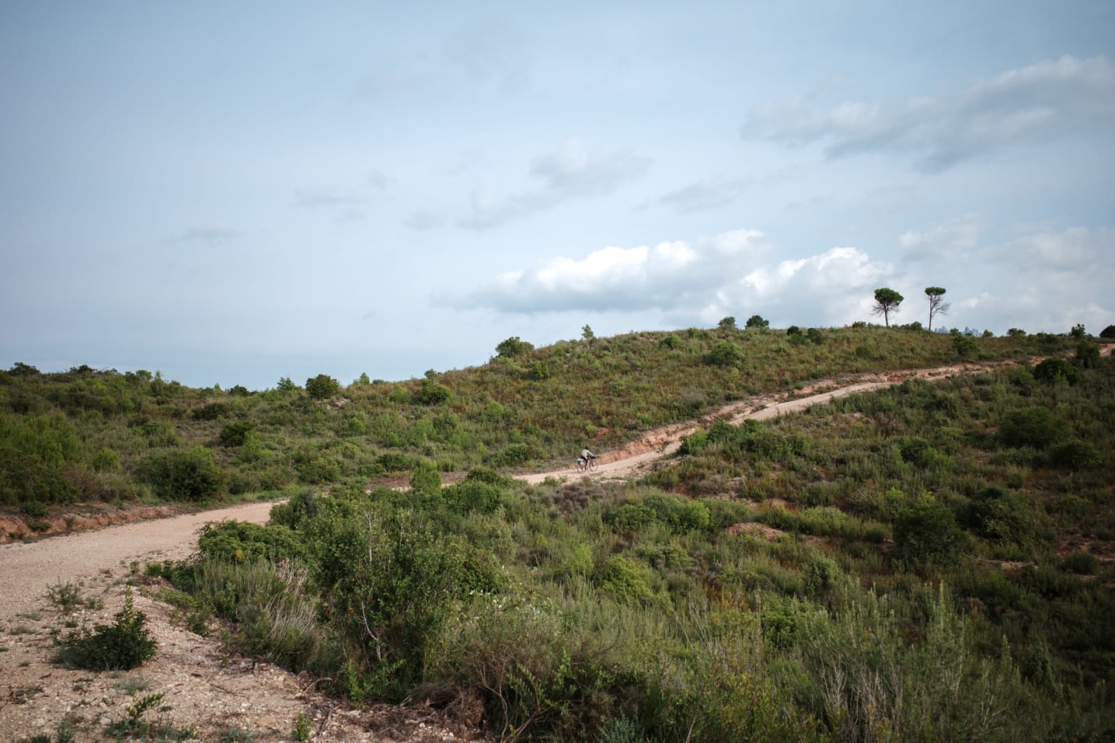 After that, we had some of our best days on the bike yet! We followed dirt roads along the mountains north of Barcelona. Soon, Montserrat was providing an incredible backdrop as we climbed steep ridges and descended into stunning valleys. There’s no denying that riding in Spain is often tough — most days were filled with very steep, drawn-out climbs on loose rock. Our hearts would sink each morning when looking at the elevation map on our Garmin. Sometimes, the route made no sense at all either, leading us up brutal trails seemingly just for the sake of it. We’d push our bikes up, cursing, but the views were amazing, and we were having a blast — definitely type 2 fun at times.