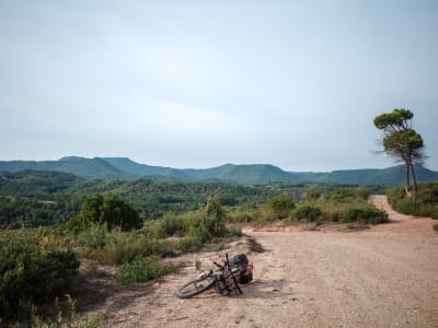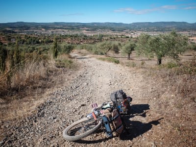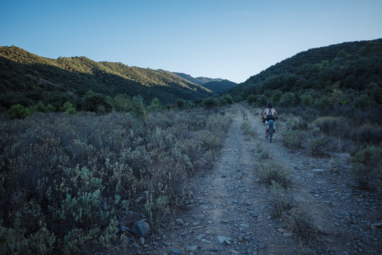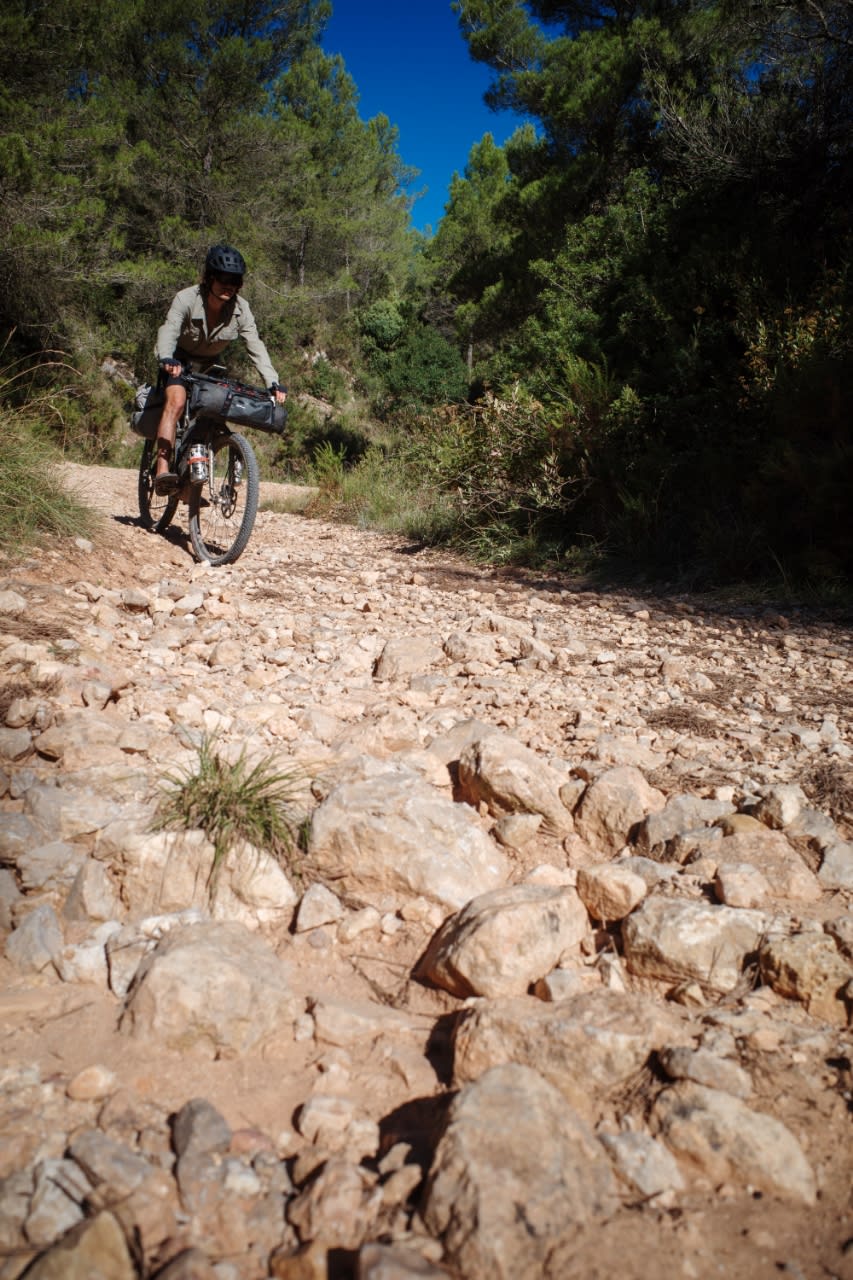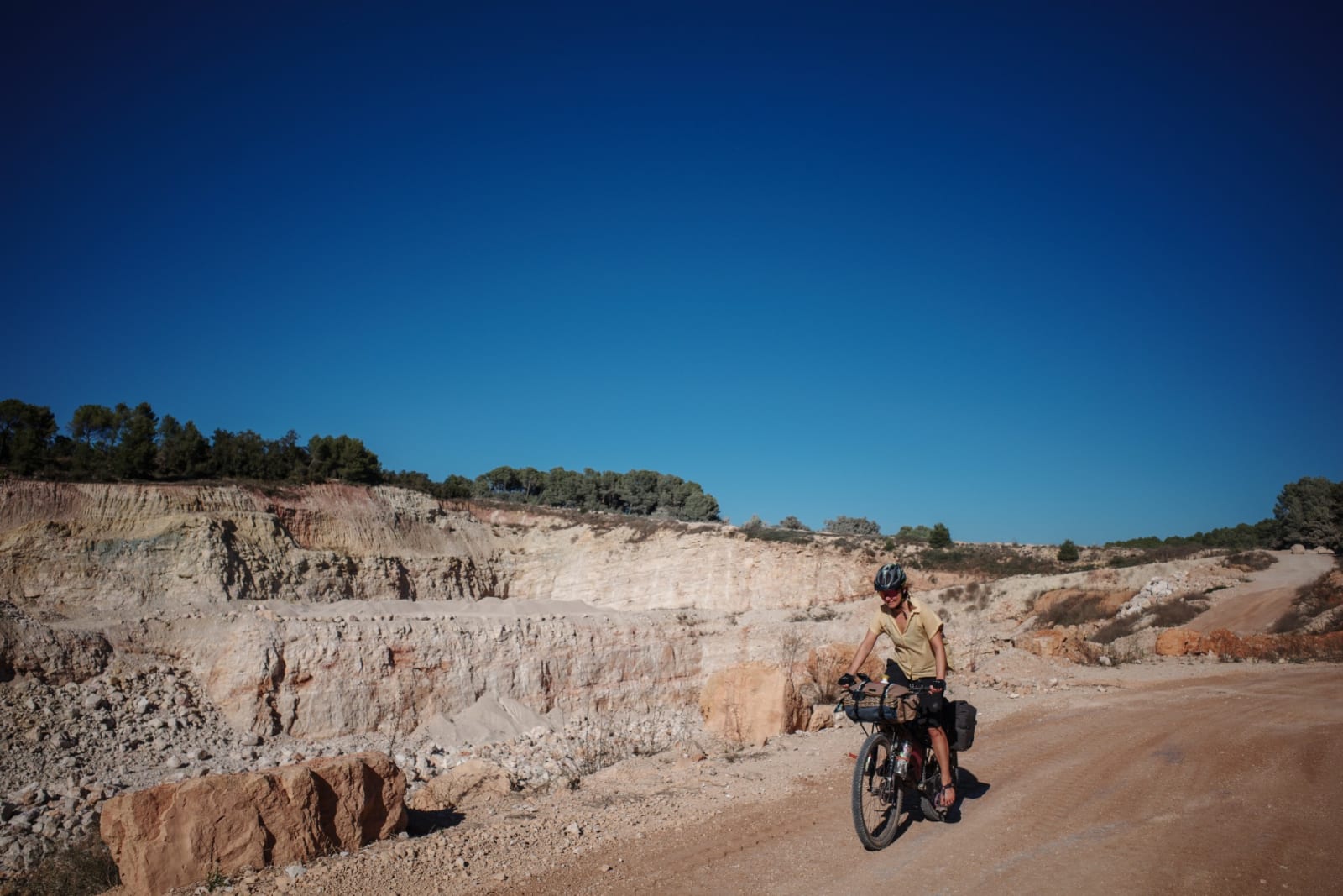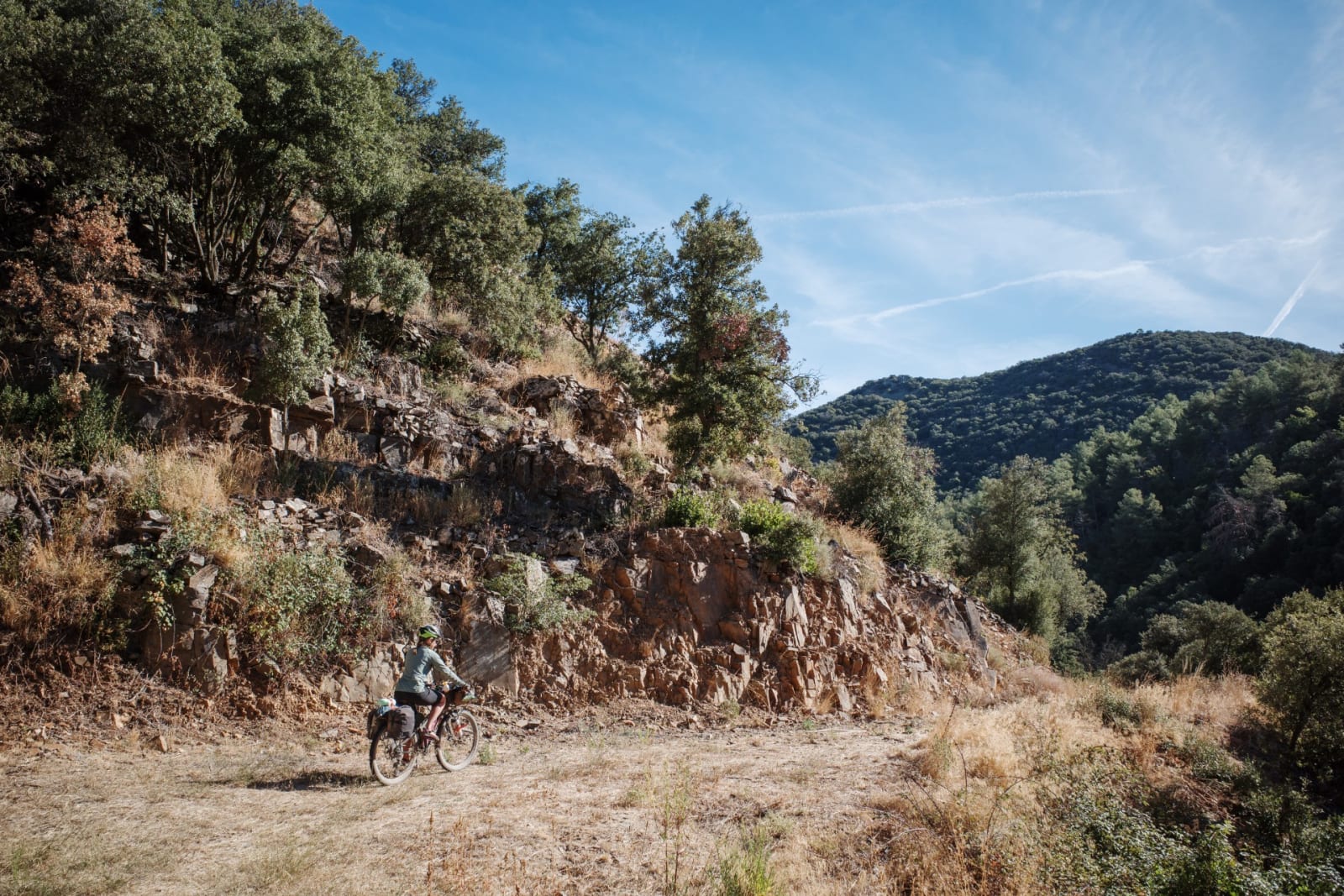 After that, we had some of our best days on the bike yet! We followed dirt roads along the mountains north of Barcelona. Soon, Montserrat was providing an incredible backdrop as we climbed steep ridges and descended into stunning valleys. There’s no denying that riding in Spain is often tough — most days were filled with very steep, drawn-out climbs on loose rock. Our hearts would sink each morning when looking at the elevation map on our Garmin. Sometimes, the route made no sense at all either, leading us up brutal trails seemingly just for the sake of it. We’d push our bikes up, cursing, but the views were amazing, and we were having a blast — definitely type 2 fun at times.