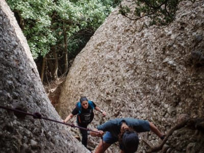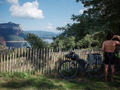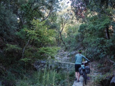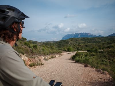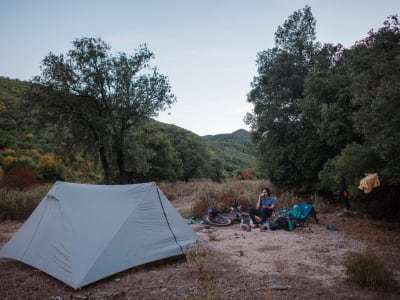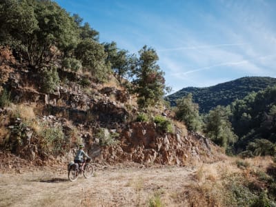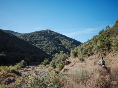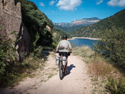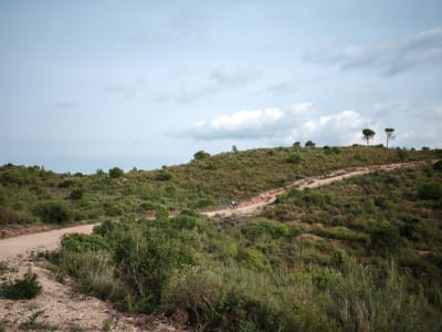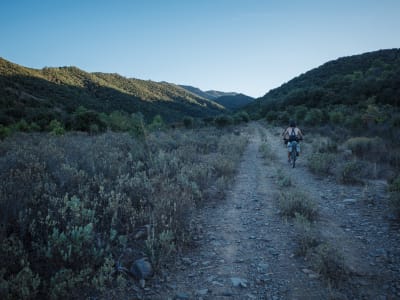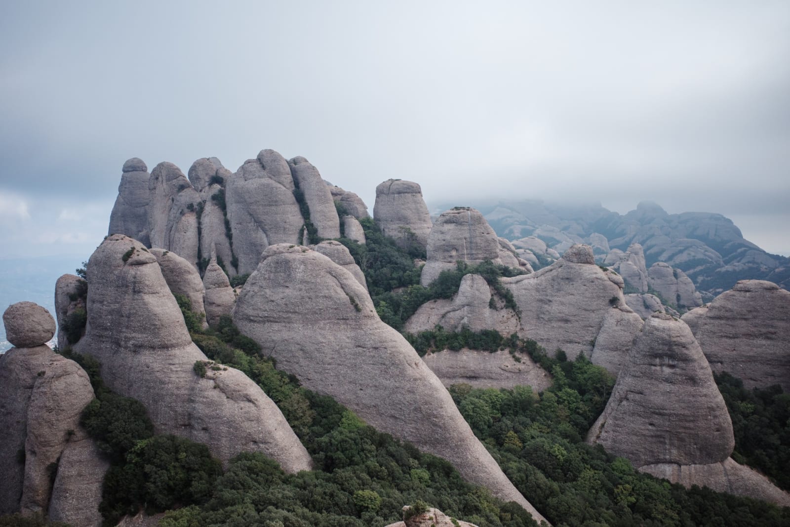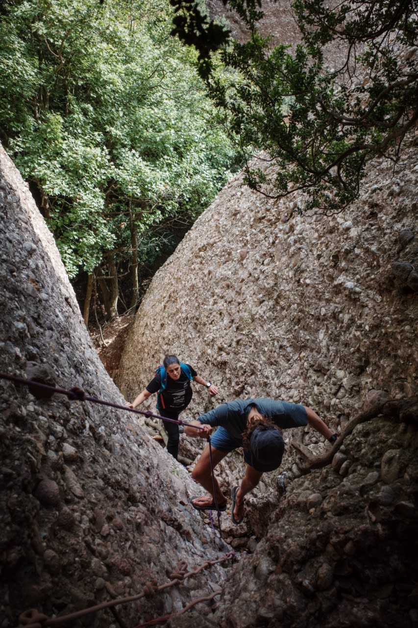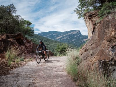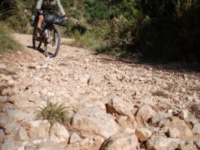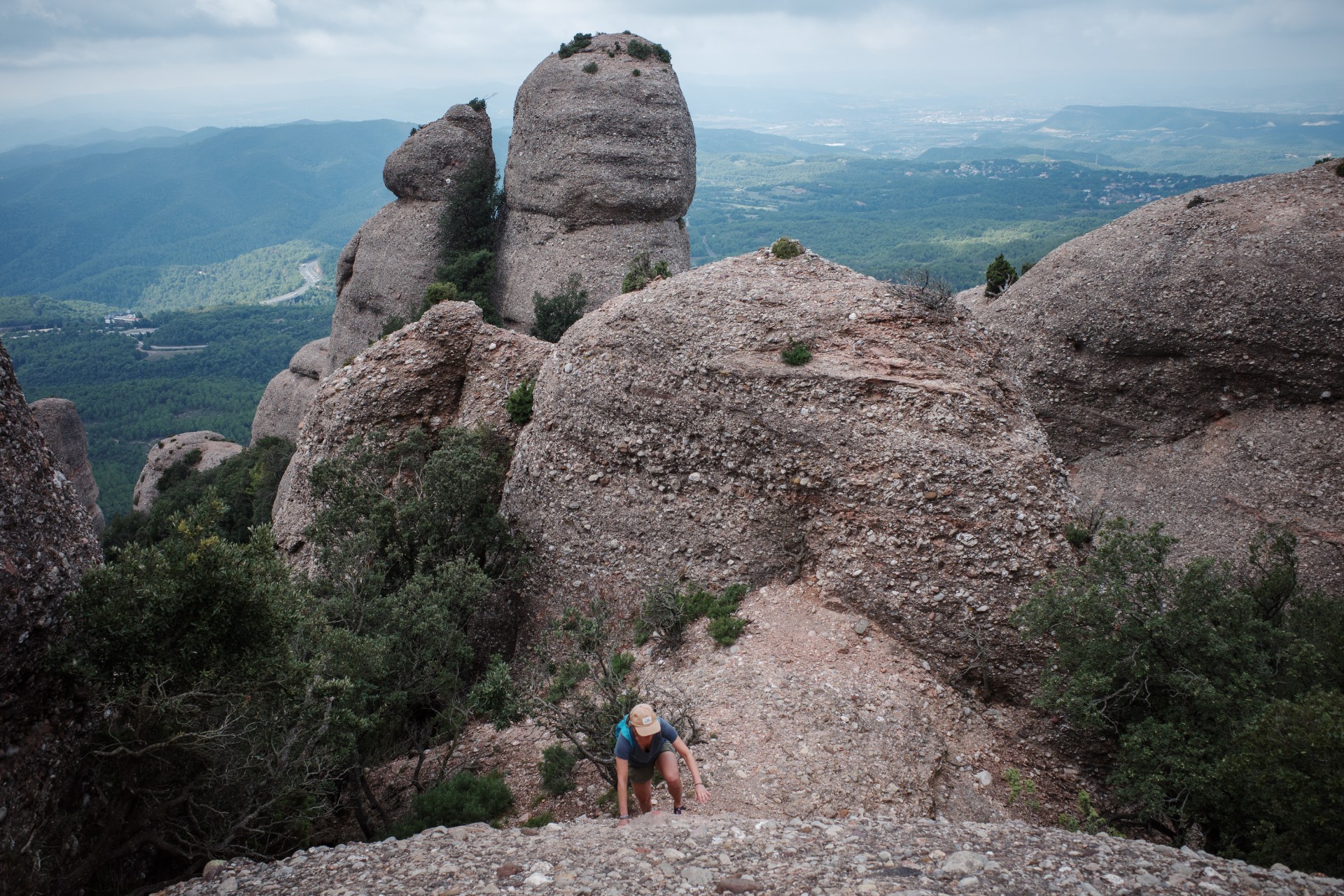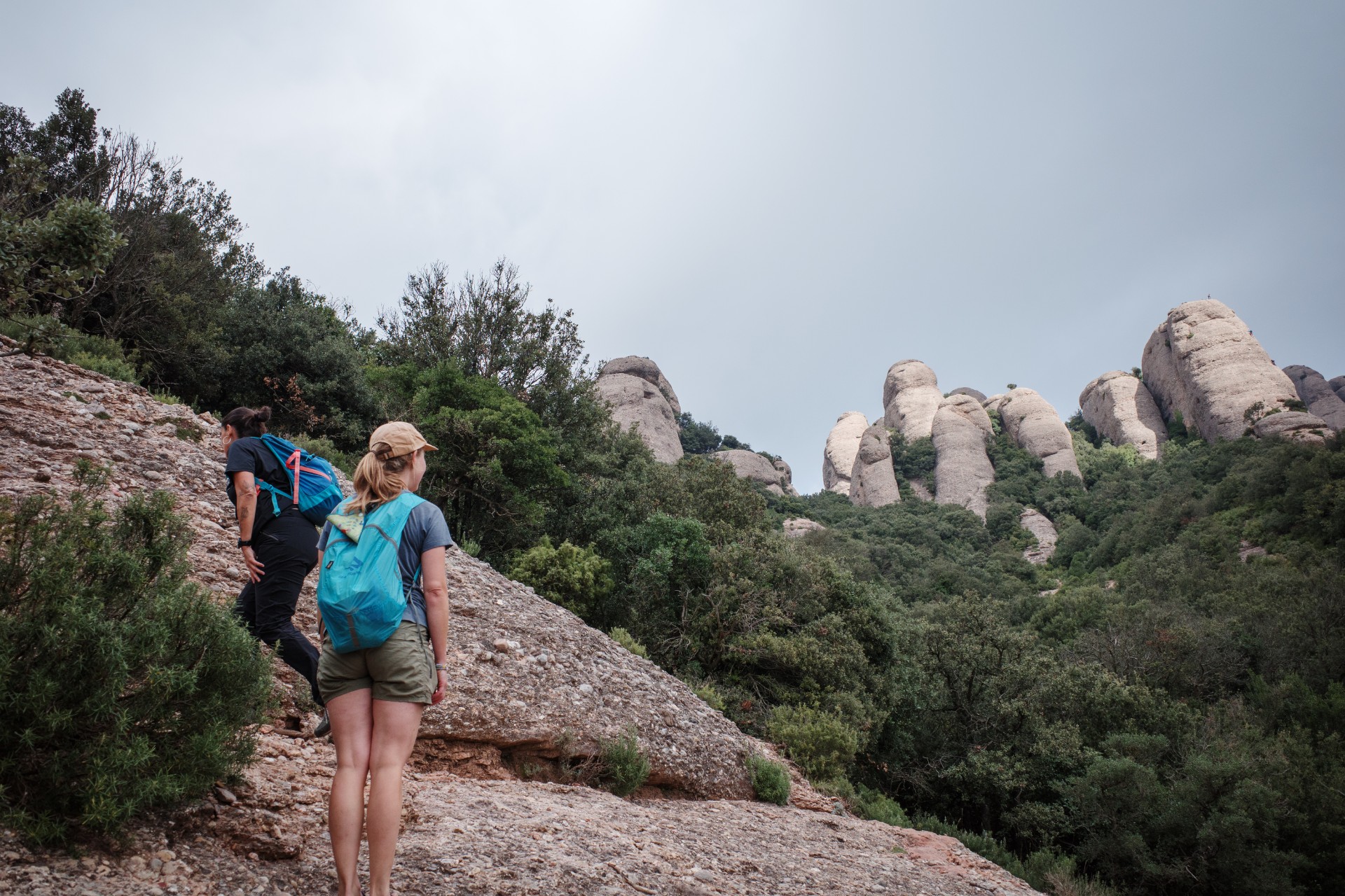 After that, we had some of our best days on the bike yet! We followed dirt roads along the mountains north of Barcelona. Soon, Montserrat was providing an incredible backdrop as we climbed steep ridges and descended into stunning valleys. There’s no denying that riding in Spain is often tough — most days were filled with very steep, drawn-out climbs on loose rock. Our hearts would sink each morning when looking at the elevation map on our Garmin. Sometimes, the route made no sense at all either, leading us up brutal trails seemingly just for the sake of it. We’d push our bikes up, cursing, but the views were amazing, and we were having a blast — definitely type 2 fun at times.