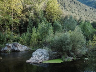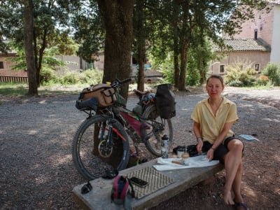We started off from Sant Llorenç de la Muga, with a big day of climbing ahead of us to reach the city of Olot. We mostly followed the Transpyrinea route and were surprised to see many other bikepackers tackling the same climb. It turned out they were participating in an ultra race across the Pyrenees! It was fun chatting with some of them — there were even a few Belgian girls taking part.