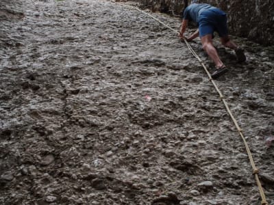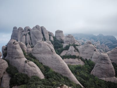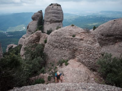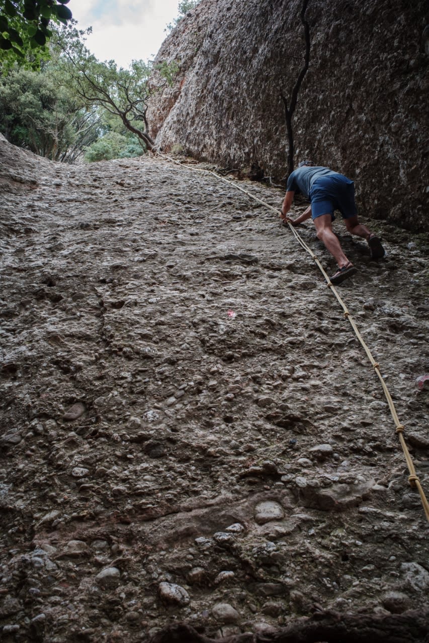Near Manresa, we were lucky to find another Warmshowers host. Ampa was amazing — super welcoming — and we actually ended up staying two nights at her place! When we arrived, she immediately threw all our clothes in the washer and hung them up to dry. It had been a while since they were that clean! While we took our warm shower, she cooked a delicious traditional oven dish for us — tostida — and we had some beers together. The next day she had the day off and suggested we go for a walk at Montserrat, the iconic serrated mountain north of Barcelona with its instantly recognizable shape. The perfect rest day… or so we thought! The “walk” quickly turned into a rather technical scramble up to some of its peaks. Easy for Ampa, but it had been a while since we’d done any climbing, and those first sections were pretty scary in our sandals. We soon got back into it though, and the hike turned out amazing! We tried to repay Ampa by cooking her a lasagna dinner in return.
