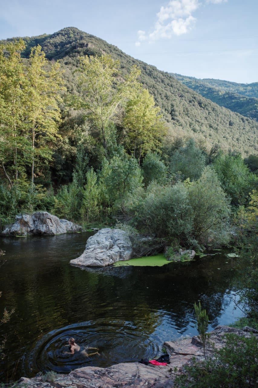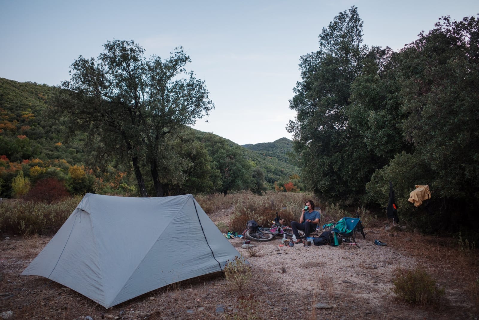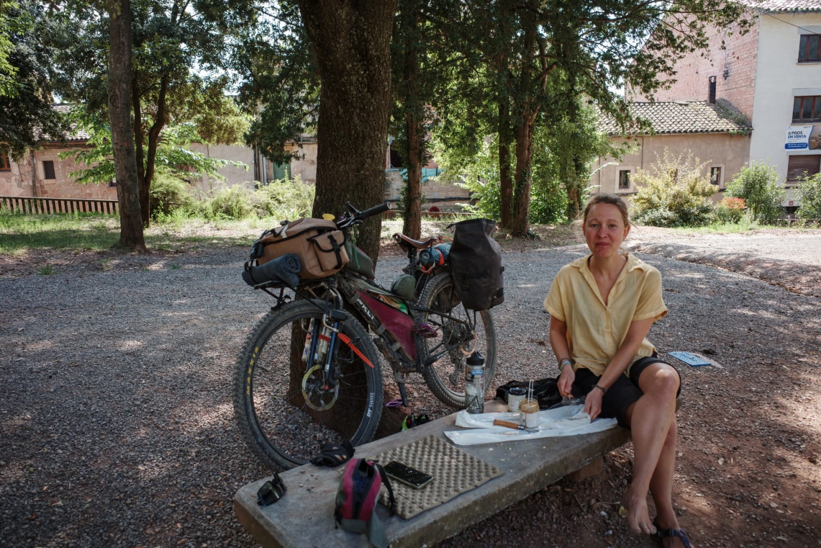 We didn’t linger long in town and kept going west — first following an old railroad track and then the Riu Ter, camping next to it. It’s never easy finding a discreet place to camp near a river, so we were pretty happy that we finally did! It felt like such a luxury to be able to wash up properly instead of crawling into our sleeping bags all sticky. Baby wipes will only get you so far after a few days!