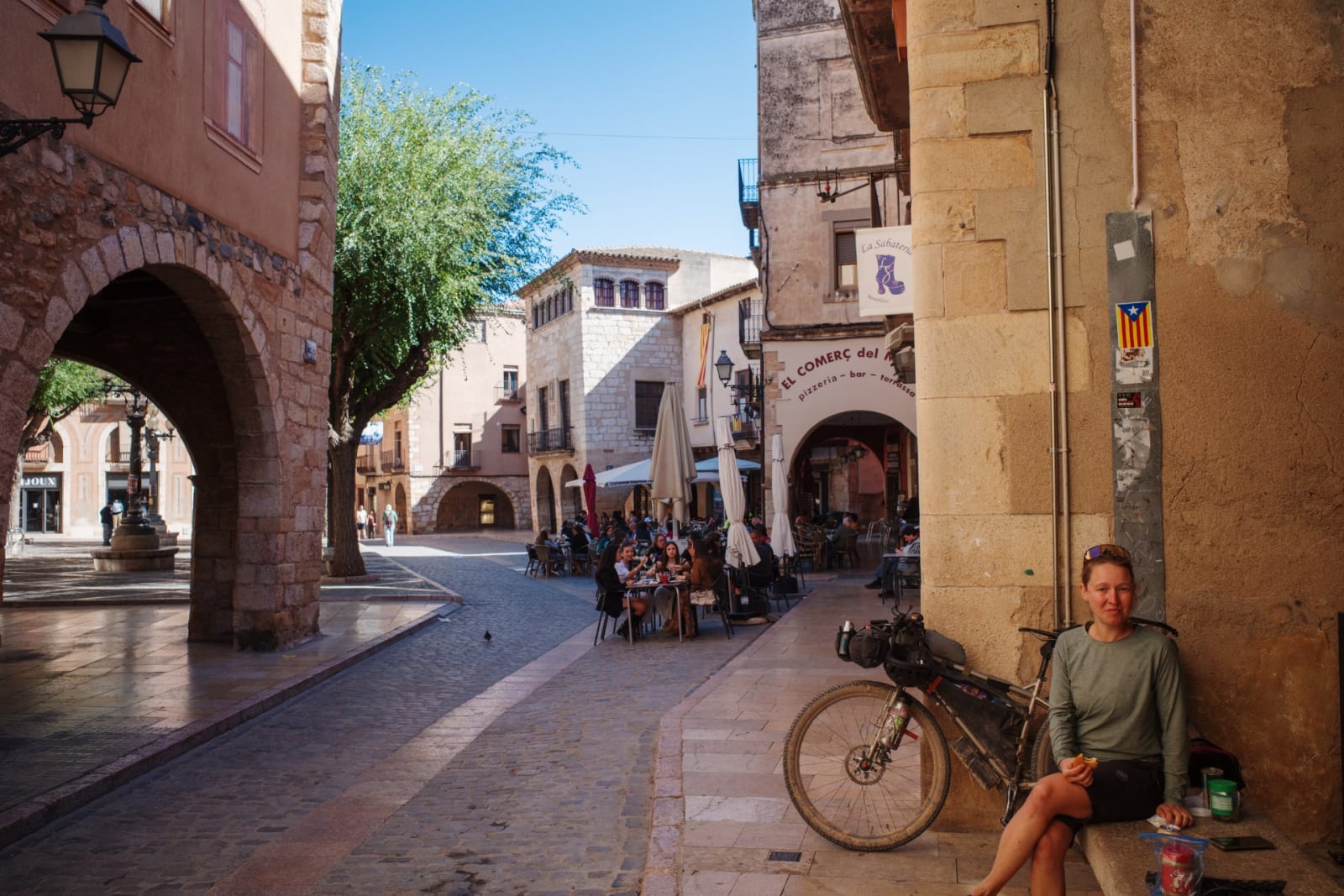 The old pueblos along the way were quaint and sometimes surprisingly lively. We’d stop and sit on shady terraces, sipping coffee and soaking in the vibes. Montblanc, one of these beautiful towns, we reached after a long and sketchy descent. It’s a picturesque medieval town that’s been beautifully preserved, nestled beneath the Muntanyes de Prades, a mountain range we needed to pass to reach an equally lovely town with the same name — Prades.